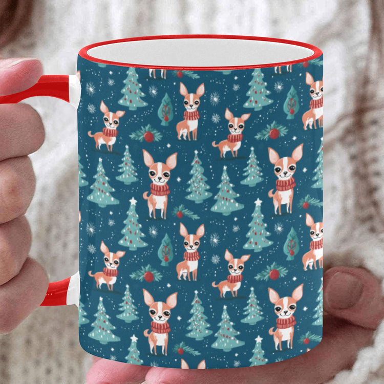 Celebrate the joy of the holiday season with our Fawn / Gold and White Chihuahua Winter Wonderland Christmas Coffee Mug!