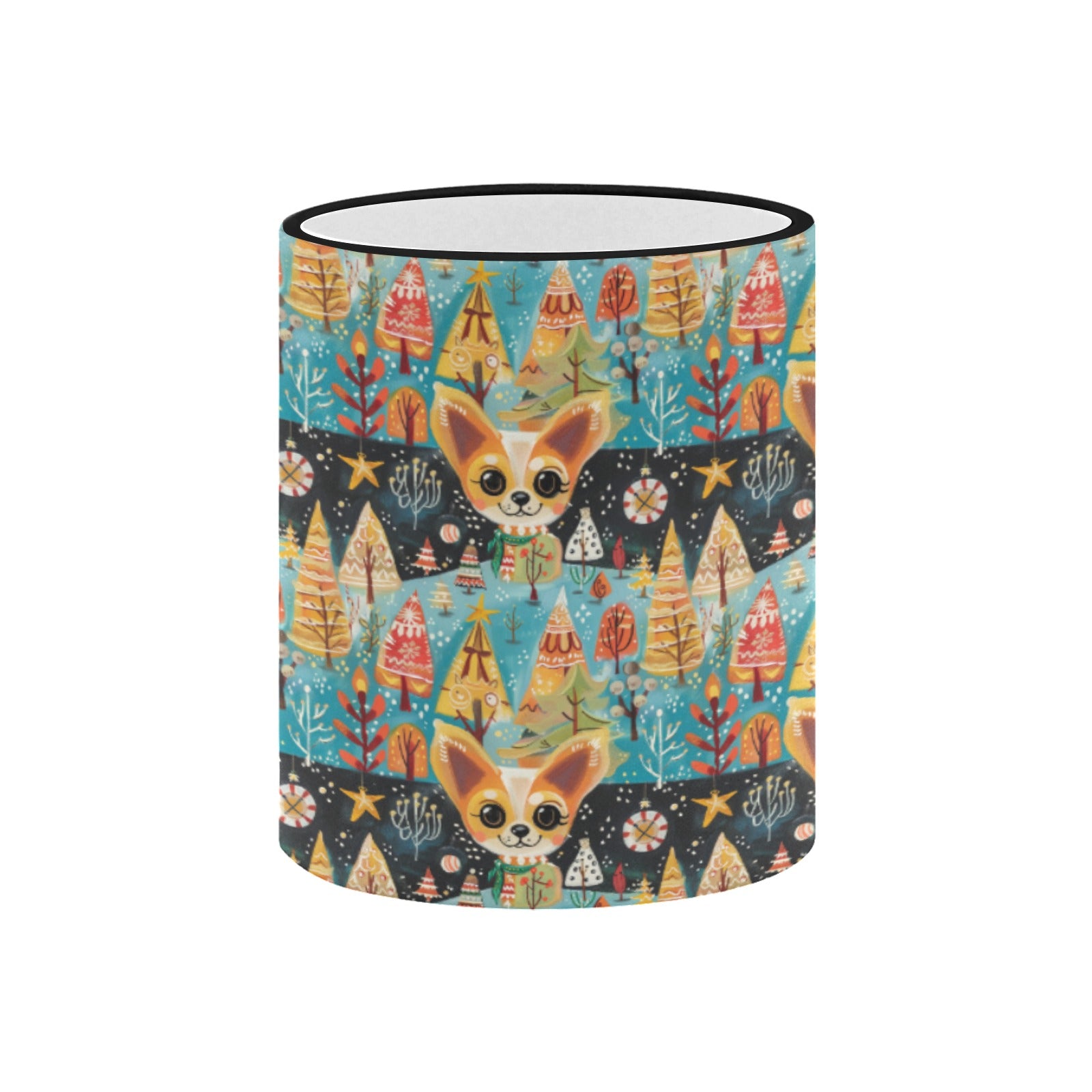 Whimsical Christmas Forest Fawn Chihuahua Coffee Mug-6