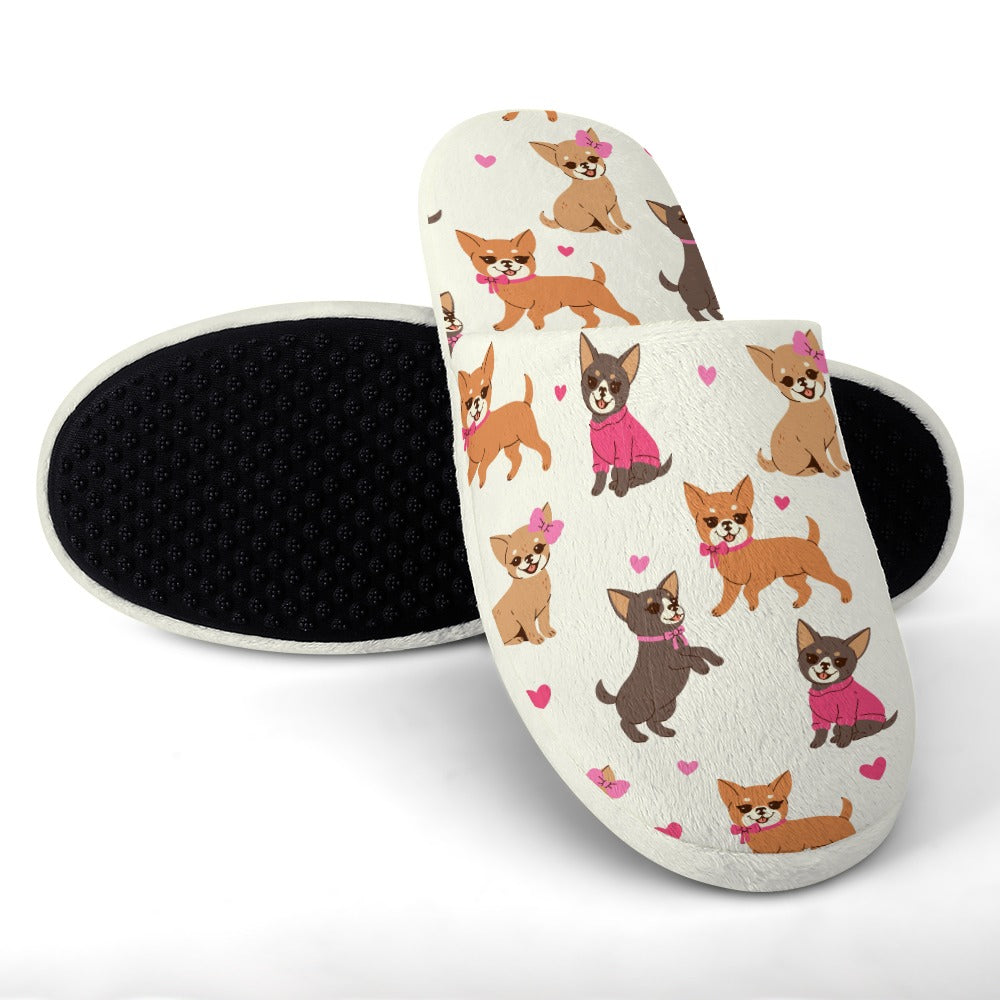 Charming Chihuahuas in Sweet Style Women's Cotton Mop Slippers-Footwear-Accessories, Chihuahua, Dog Mom Gifts, Slippers-11
