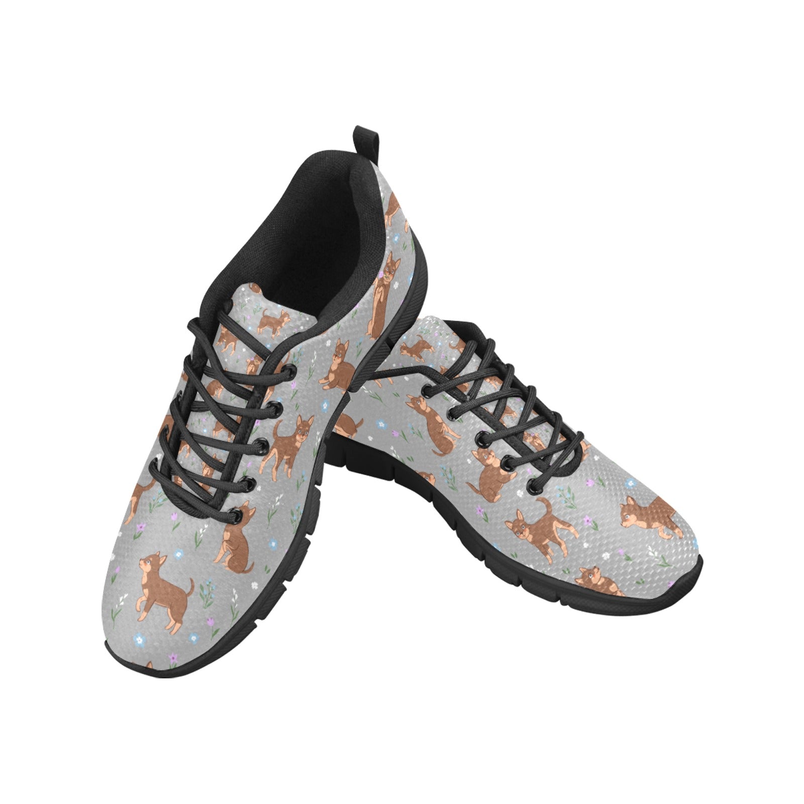 Flower Garden Chocolate Chihuahuas Women's Breathable Sneakers-Black-US13-49
