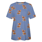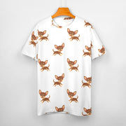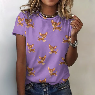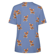 Immerse yourself in the playful charm of our Happy Chocolate Chihuahua Love All Over Print Women's Cotton T-Shirt.