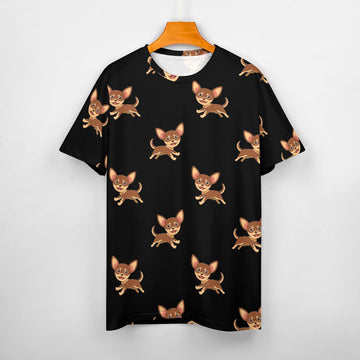 With the cutest Chocolate Chihuahuas hopping all around, this design truly captures the petite and spirited nature of the Chihuahua breed. The delightful and upbeat pattern resonates with the joyful energy that these tiny companions bring into our lives. Available in four vibrant colors, the design encapsulates the essence of the Chocolate Chihuahua, ensuring that it's not just a t-shirt, but an expression of your passion and love for these adorable canines.