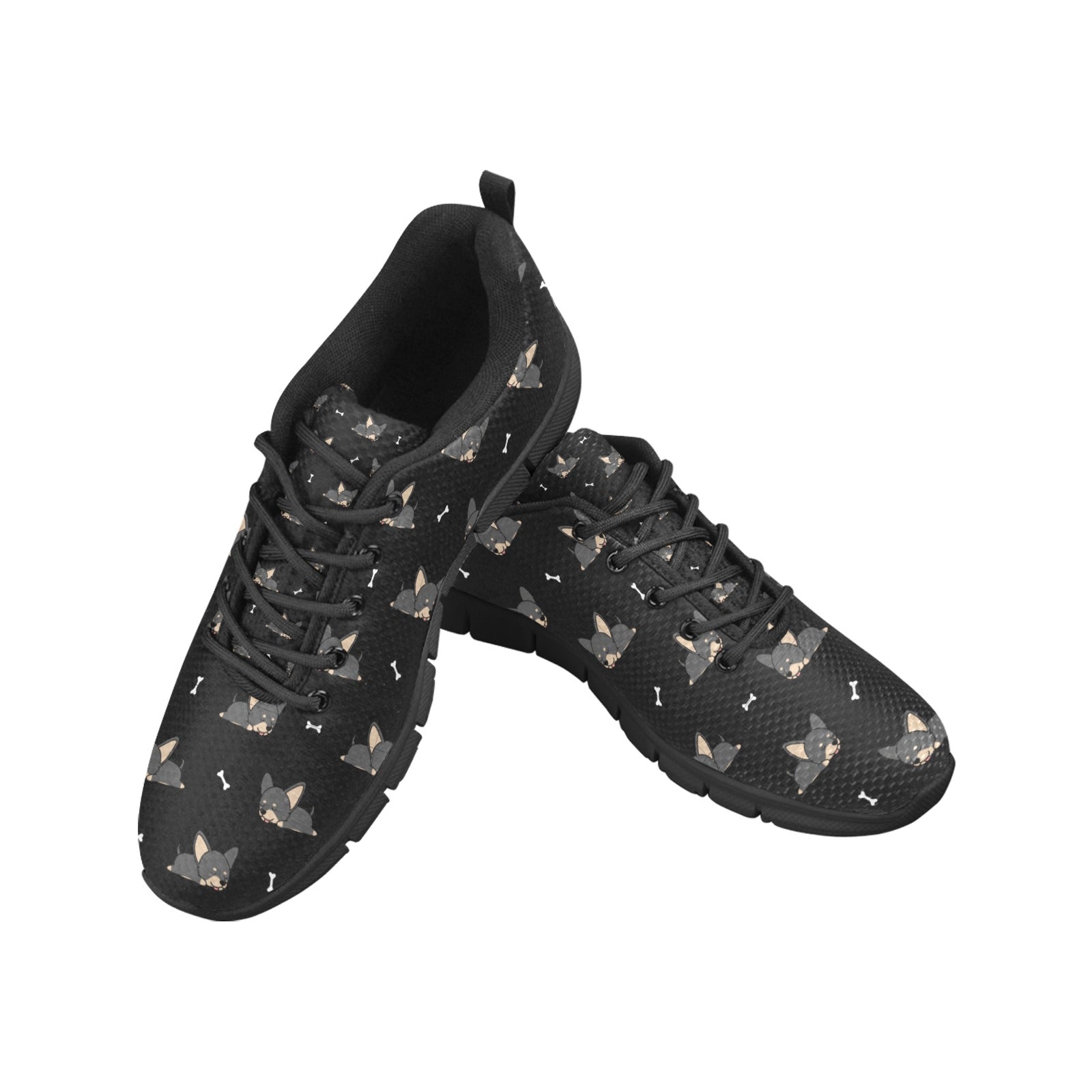 Sleepy Black Tan Chihuahuas Women's Breathable Sneakers-Black-US13-9