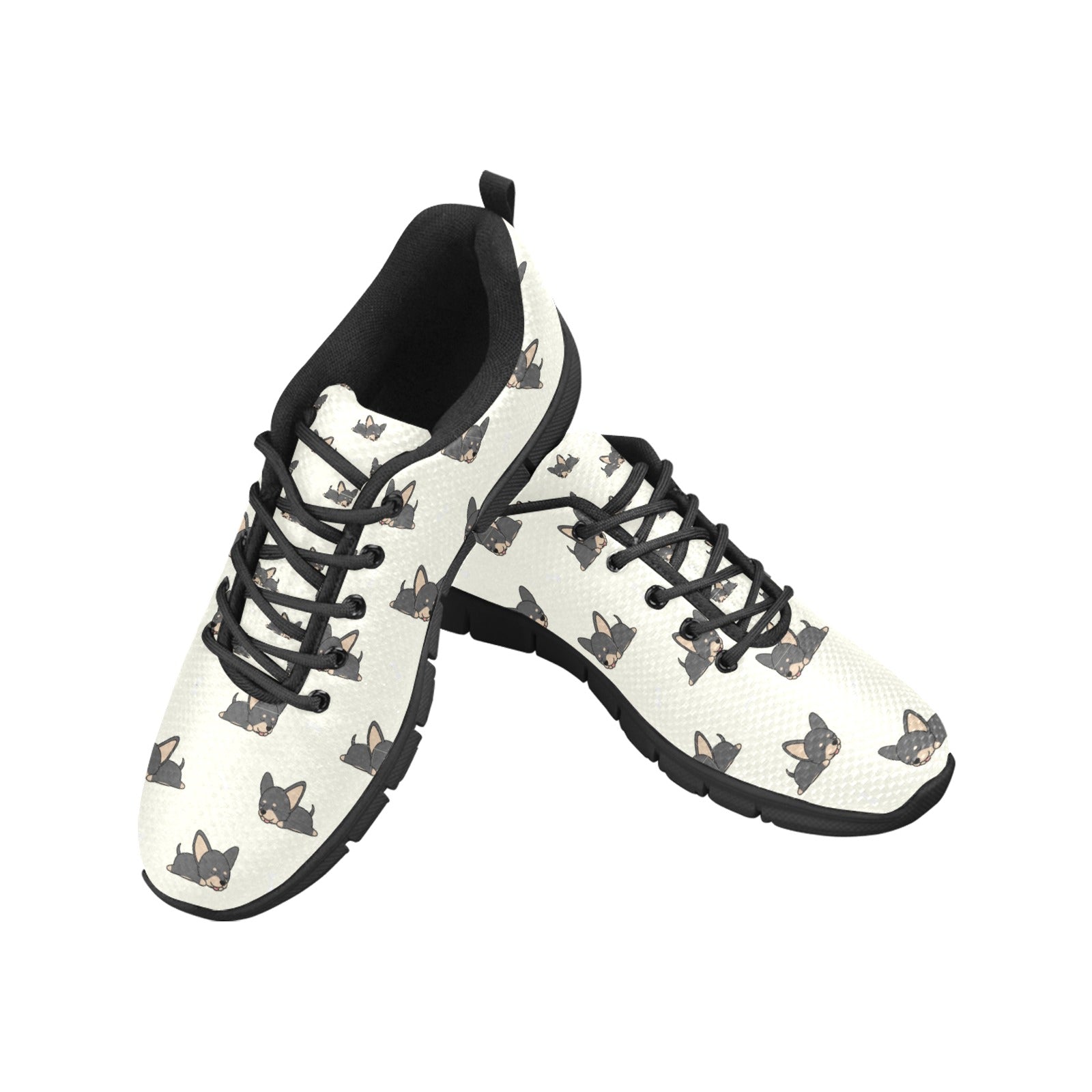 Sleepy Black Tan Chihuahuas Women's Breathable Sneakers-White2-US13-2