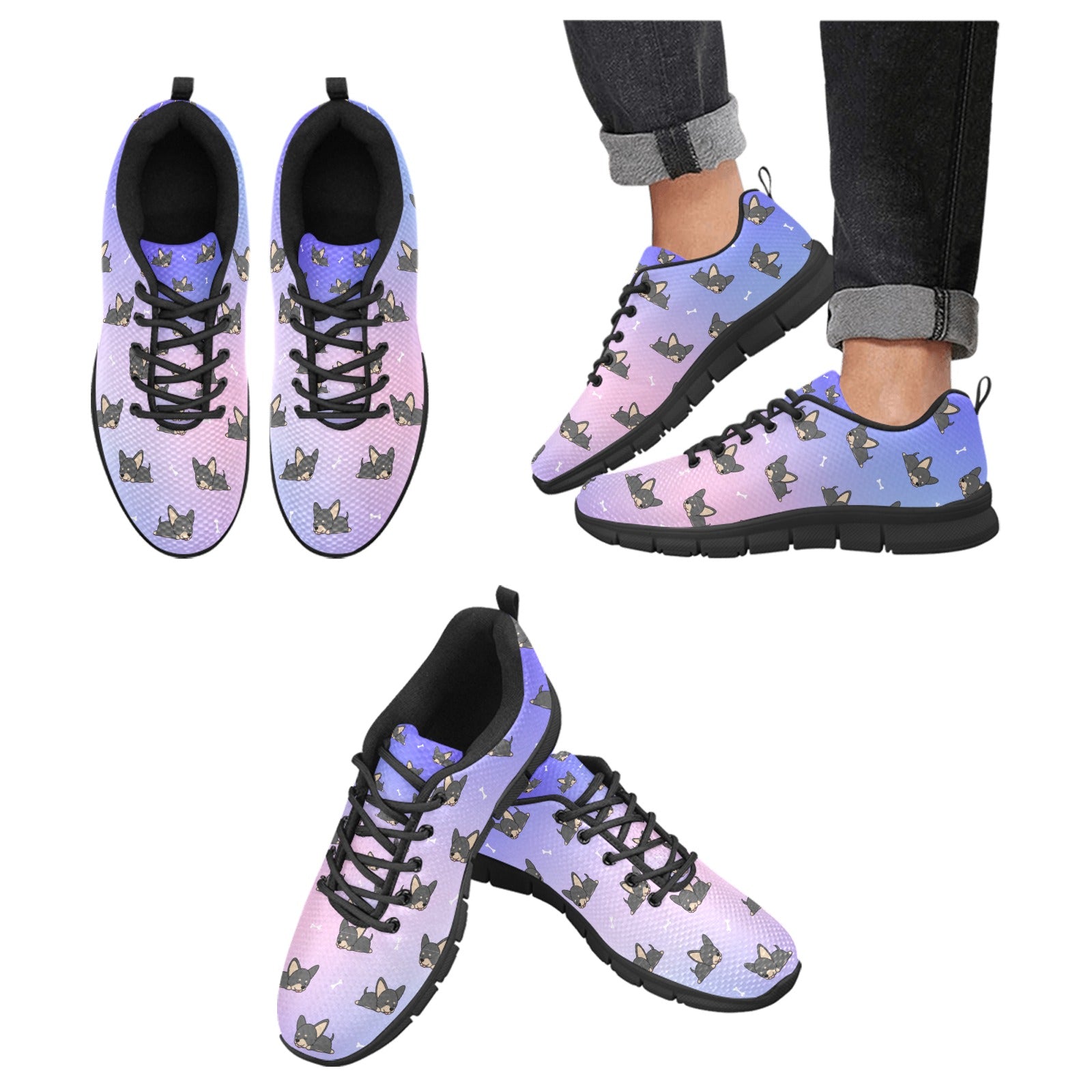 These sneakers feature an adorable pattern of sleeping Chihuahuas, each illustrated in a relaxed pose, creating a cozy vibe for your daily adventures.
