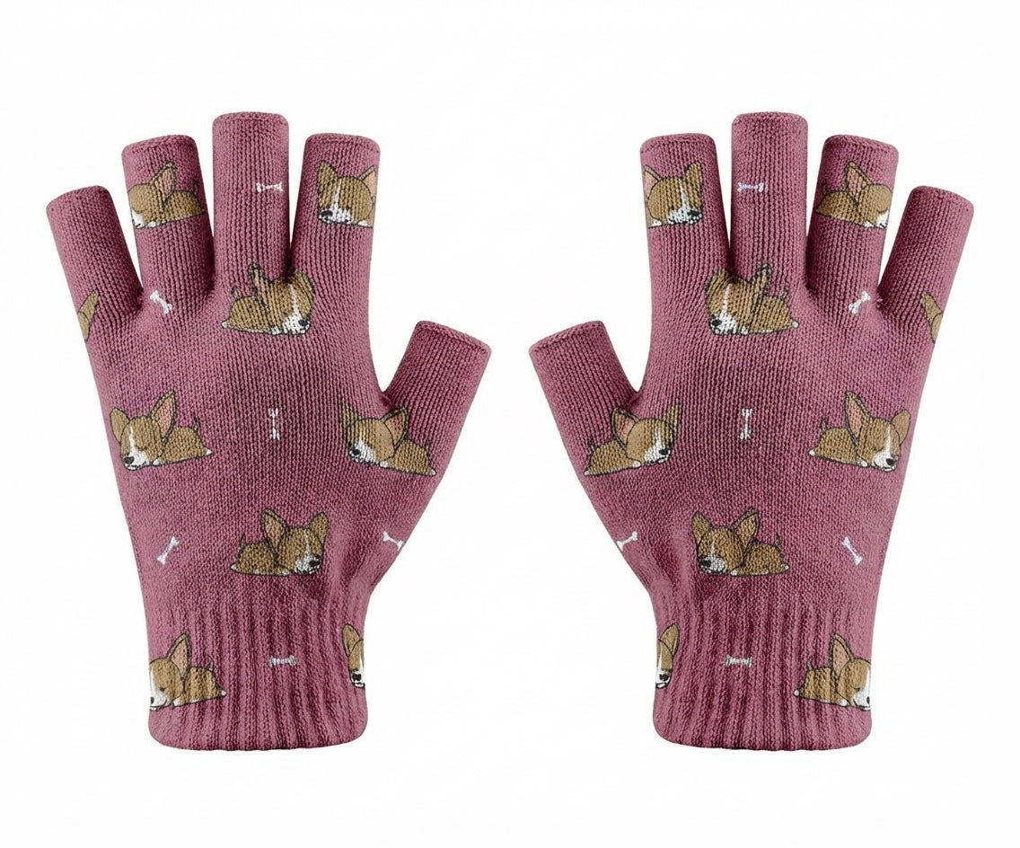 Cutest Fawn Chihuahua Love Touch Screen Gloves-Accessories-Accessories,Chihuahua,Dog Dad Gifts,Dog Mom Gifts,Gloves-Rose gold-Fingerless Gloves-3