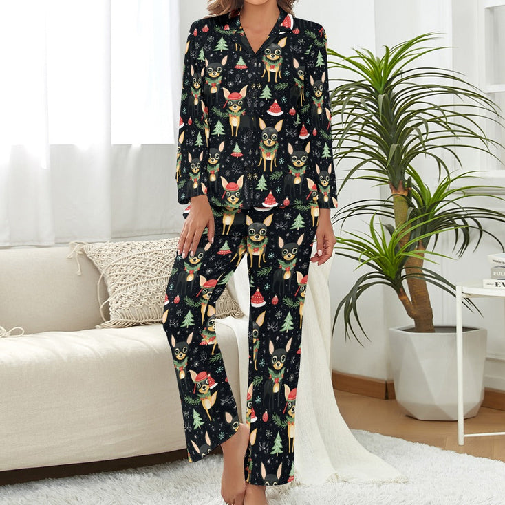 Black Tan Chihuahuas Christmas Cheer Pajamas Set for Women