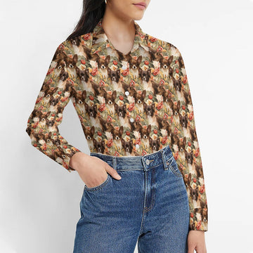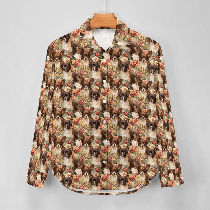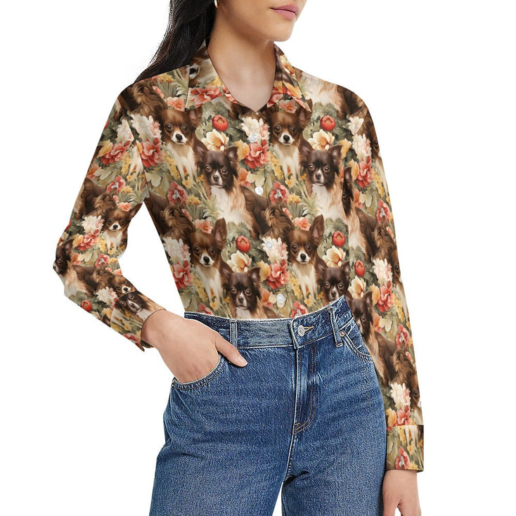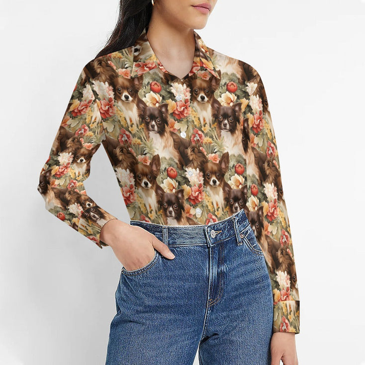 Floral Symphony Chocolate and White Chihuahuas Women's Shirt - 2 Designs