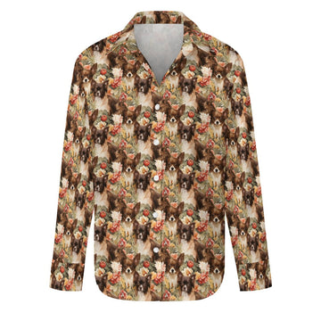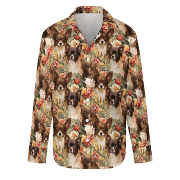 This shirt isn't just a piece of clothing; it's a canvas that celebrates the joyful and harmonious coexistence of Chihuahuas and the beauty of nature. With vibrant colors and intricate details, the seamless pattern on this shirt captures the playful spirit and curiosity that Chihuahuas are known for. Surrounded by an array of colorful flowers, their small and delicate frames come to life, showcasing the seamless integration of animals and nature.