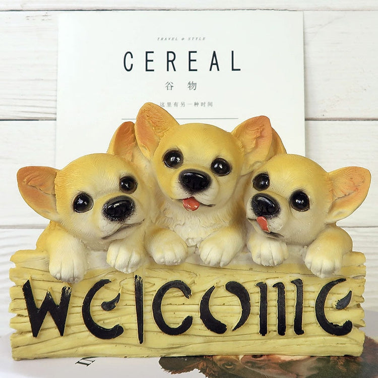 Handmade with high-quality resin and featuring the three most adorable Chihuahuas holding a Welcome Signboard.