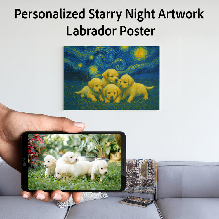 Transform your cherished memories into art with our Personalized Starry Night Artwork featuring your beloved Labrador.