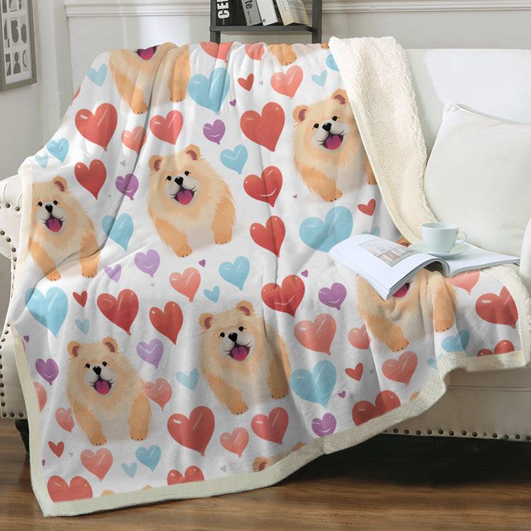 Chow Chows with Multicolor Hearts Soft Warm Fleece Blanket