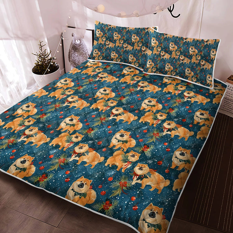 Wrap yourself in the warmth of the holiday season with our Yuletide Charm Chow Chow Christmas Quilt Blanket Bedding Set.