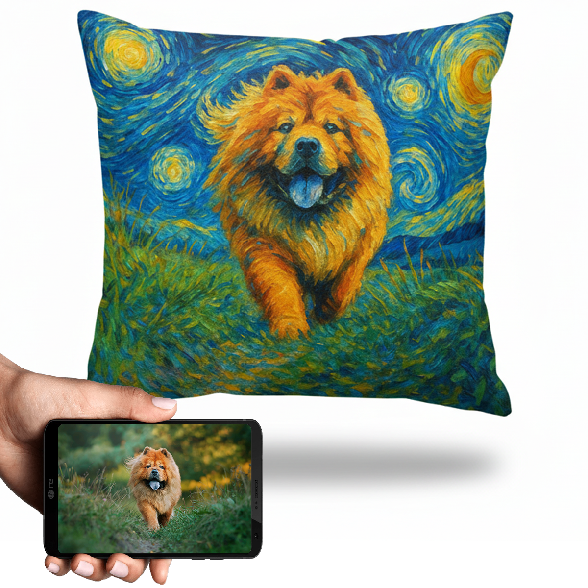 Transform your love for your Chow Chow into a stunning piece of art with our Personalized Starry Night Artwork Custom Chow Chow Pillowcase.