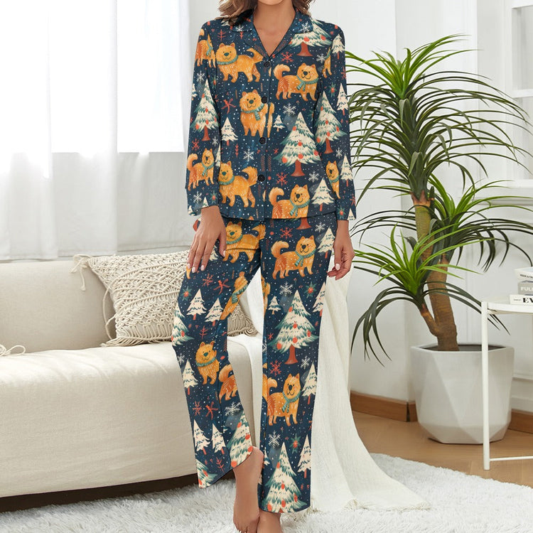 Winter Wonderland Chow Chow Christmas Pajamas Set for Women