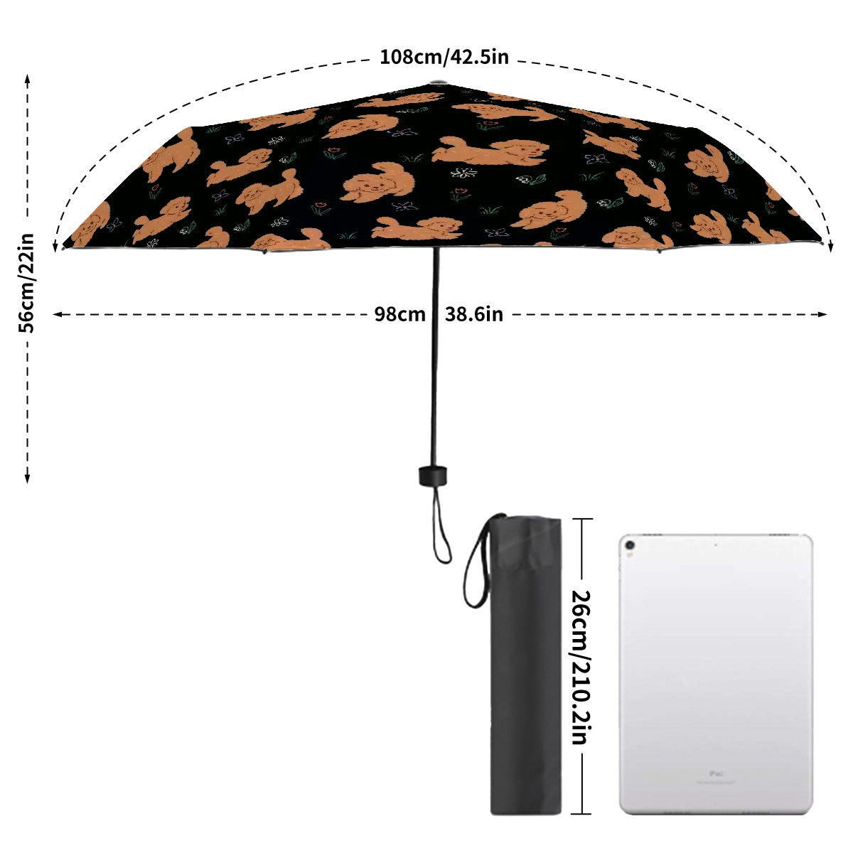Perfect for sunny days or unexpected rain showers, this compact umbrella features a delightful design showcasing Doodles frolicking among flowers. Its lightweight build and easy-grip handle make it ideal for everyday use, whether you’re heading to the park or running errands.