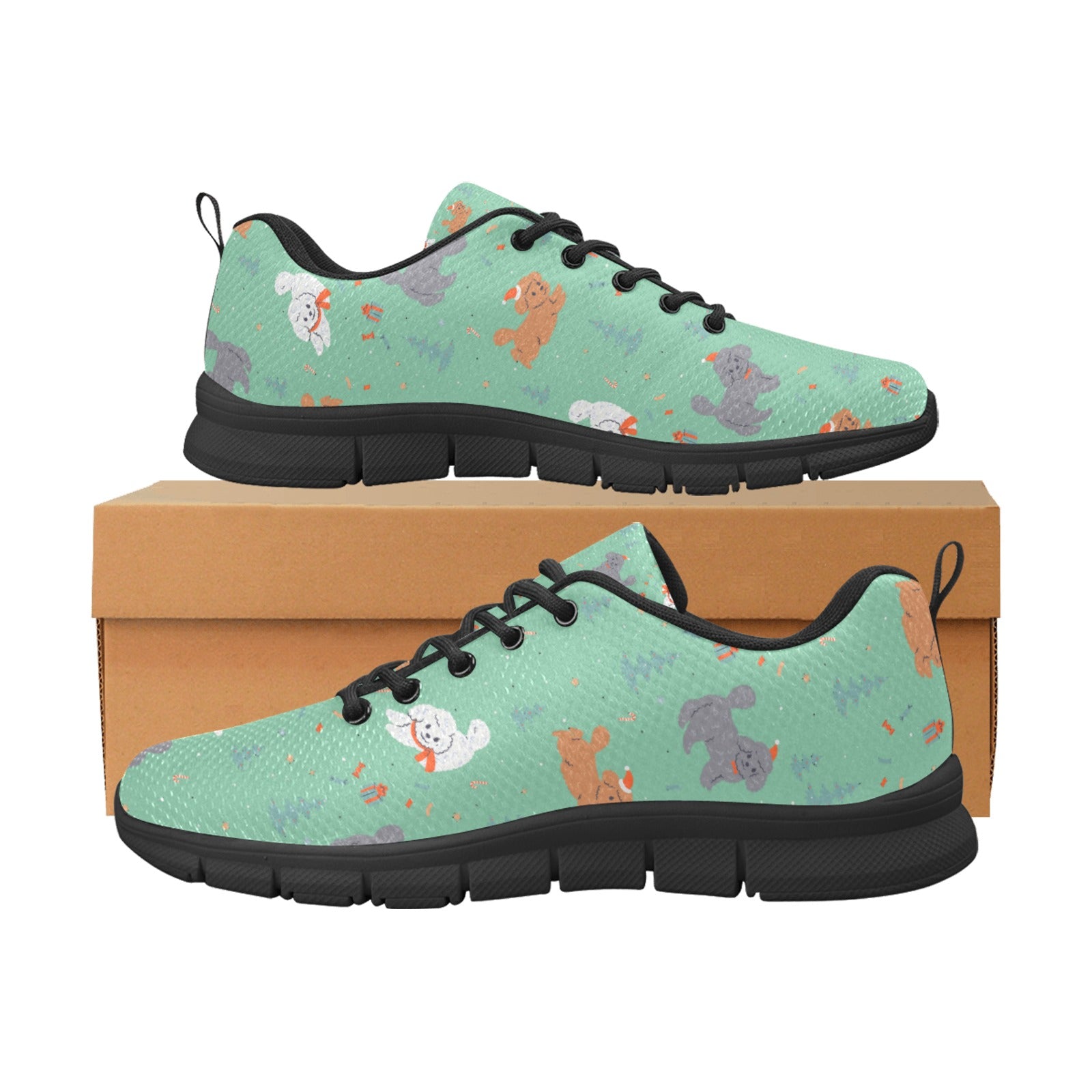 Show Your Love for your favorite Four-legged friends with Our Pawfect Gifts for Doodles Lovers. These sneakers feature playful Dogs adorned with Santa hats and cozy scarves, surrounded by Christmas trees and candy canes.