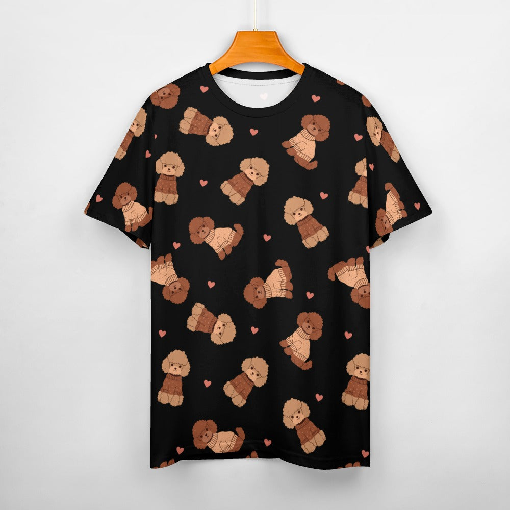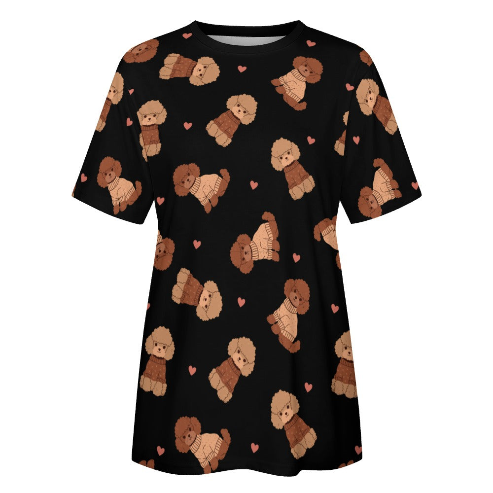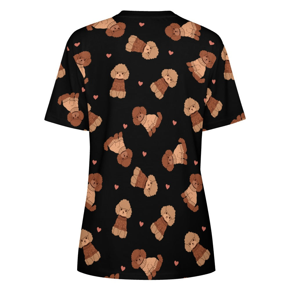Playful Poodles in Christmas Women's Cotton T-Shirt-Apparel-Midnight Black-2XS-42