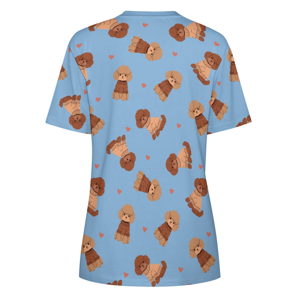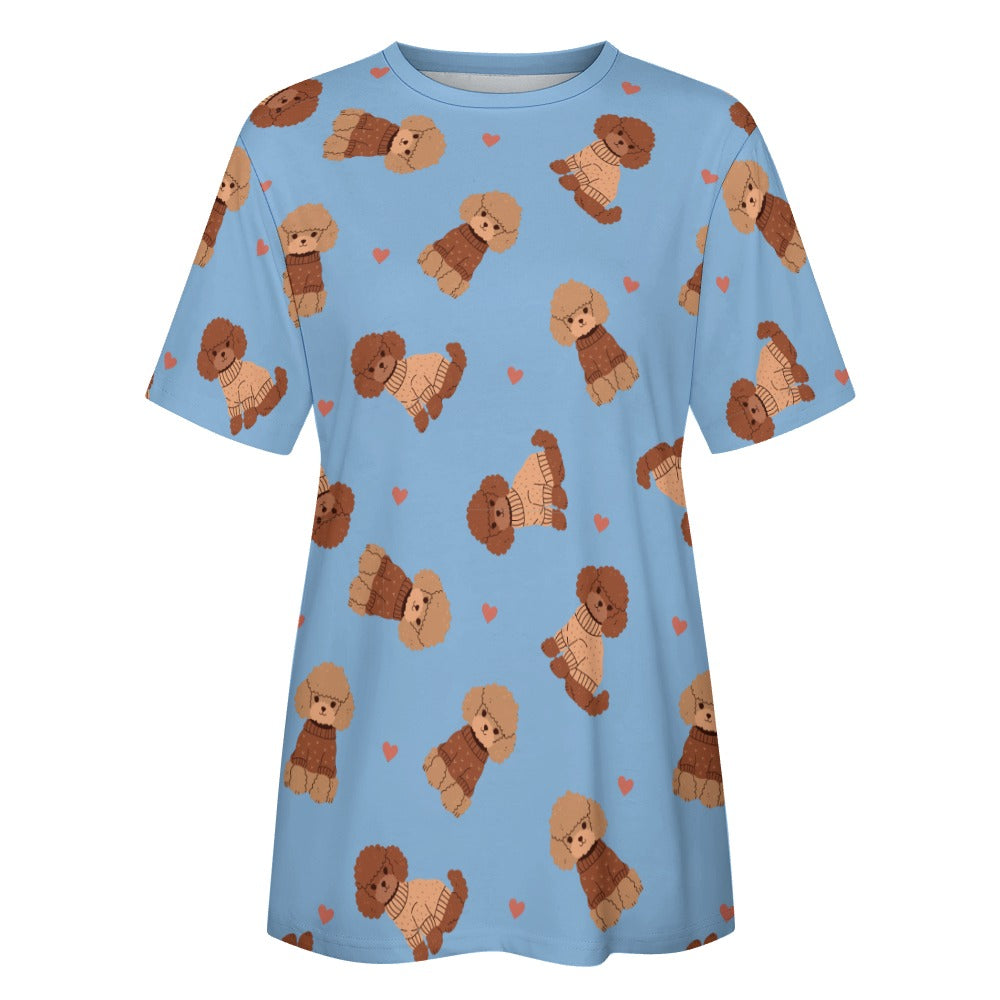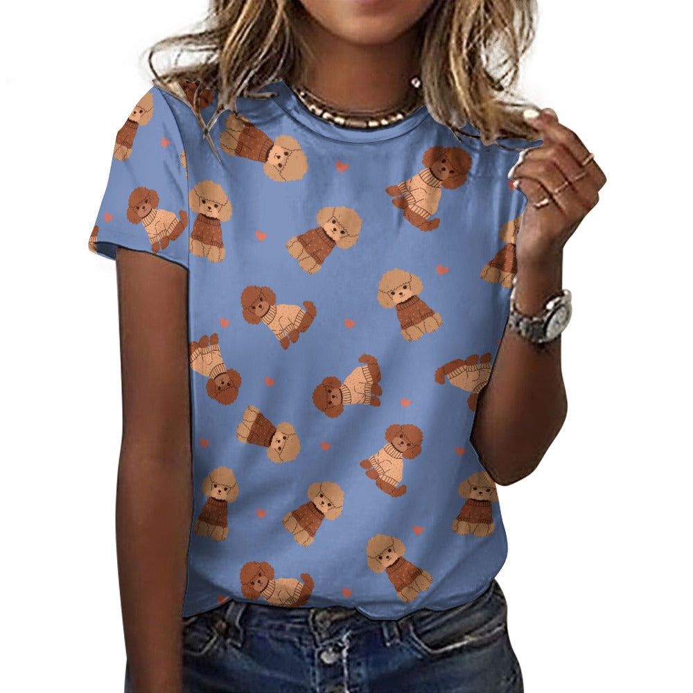 Playful Poodles in Christmas Women's Cotton T-Shirt-Apparel-Sky Blue-2XS-14