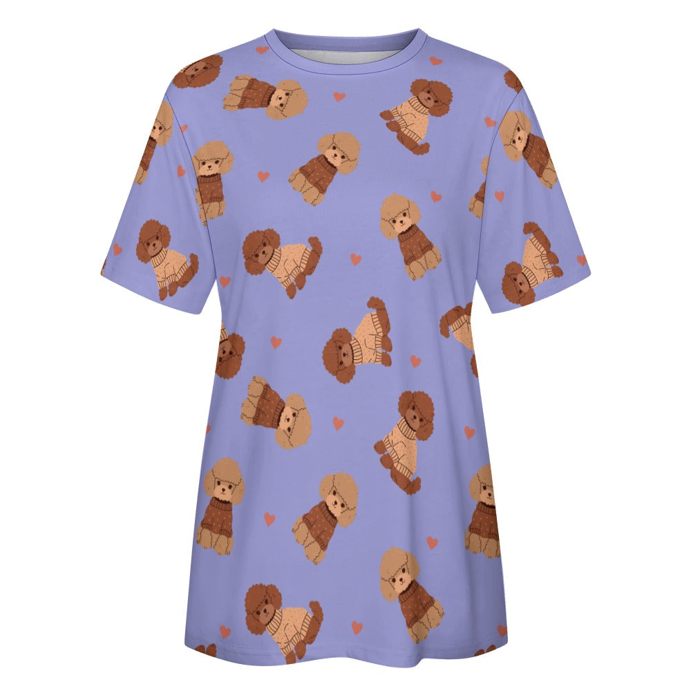 Playful Poodles in Christmas Women's Cotton T-Shirt-Apparel-Lavender Purple-2XS-29