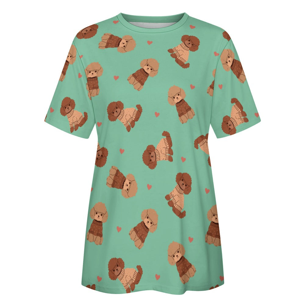 Playful Poodles in Christmas Women's Cotton T-Shirt-Apparel-Mint Green-2XS-27