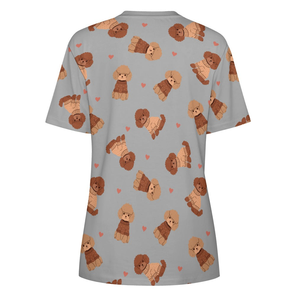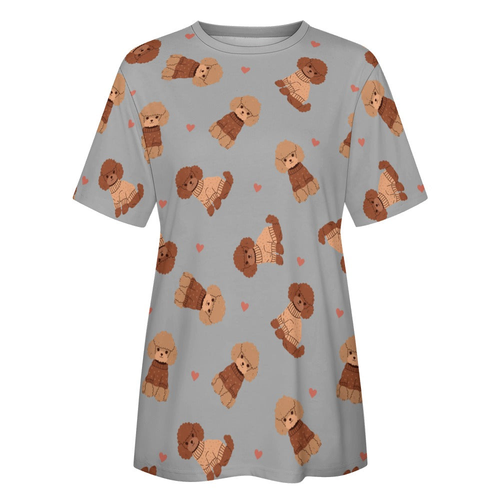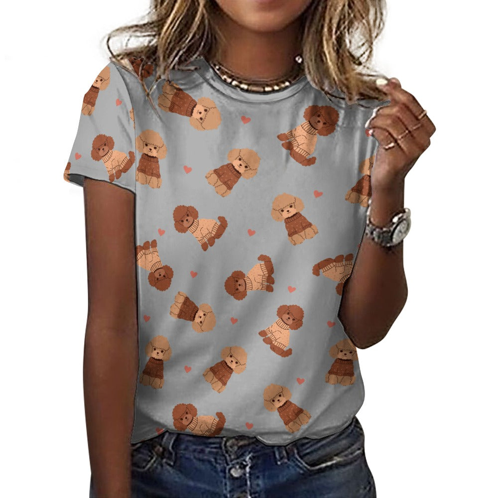 Playful Poodles in Christmas Women's Cotton T-Shirt-Apparel-Parisian Gray-2XS-36