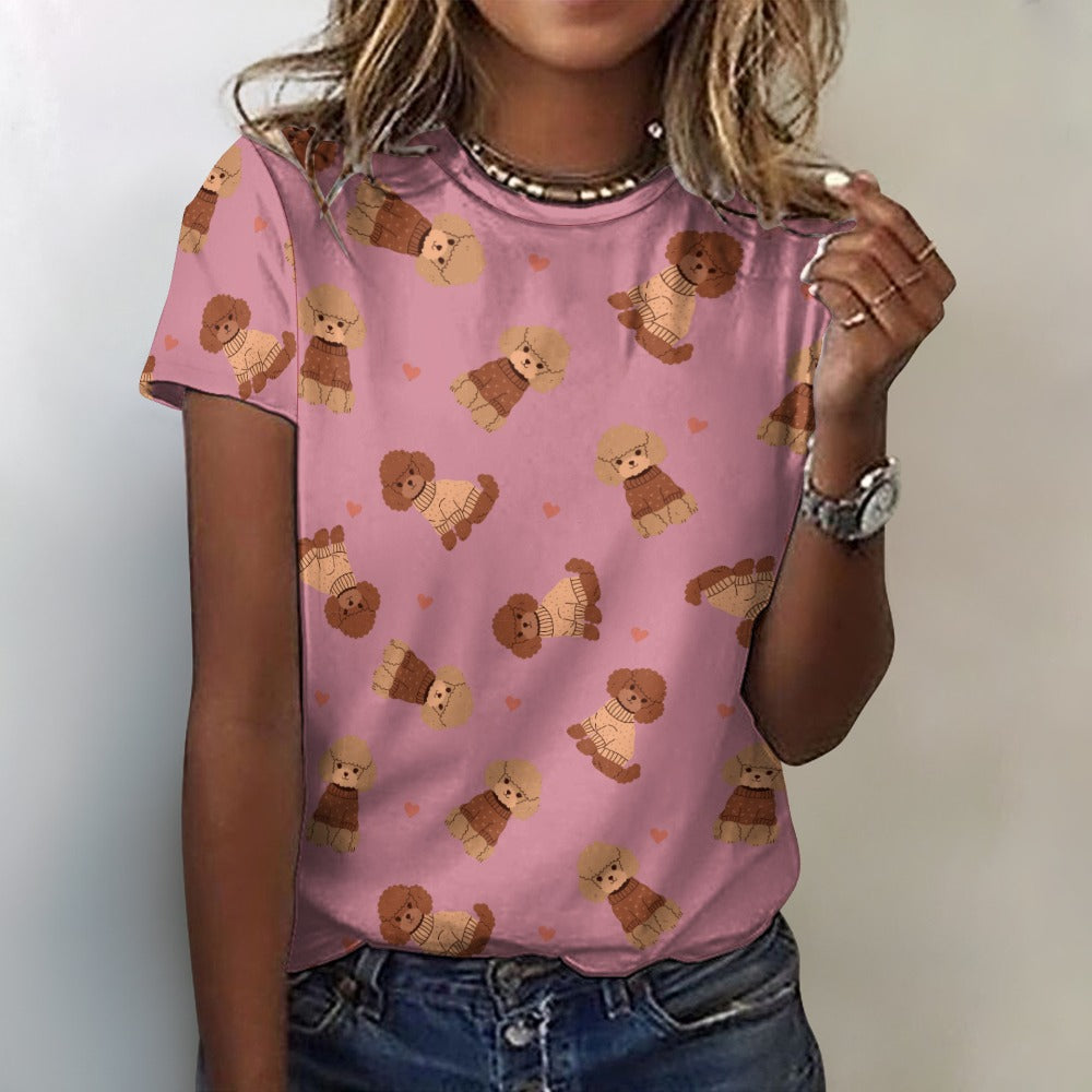 Playful Poodles in Christmas Women's Cotton T-Shirt-Apparel-Dusty Pink-2XS-9