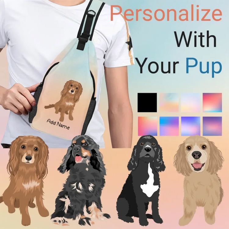 Celebrate your Cocker Spaniel love with a personalized sling bag that captures the essence of your furry friend.
