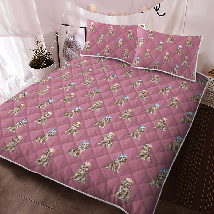 Watercolor Liver Cocker Spaniels Christmas Quilted Bedding Set-Bedding-Bedding, Blankets, Christmas, Cocker Spaniel, Home Decor-Dusty Pink-With Matching Pillowcases-Twin-11