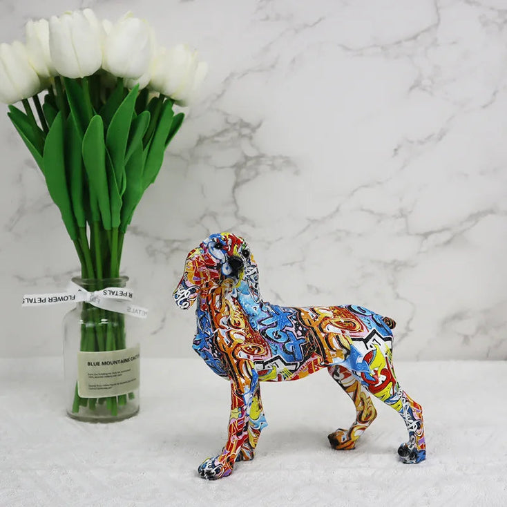 This stunning piece is crafted from high-quality resin and features a unique, colorful design created using the hydro dip technique. The bold, abstract patterns and bright colors make it a modern and edgy addition to any home decor. Perfect as a sentimental gift, this statue can be a beautiful reminder of a cherished pet or a striking piece of art for dog lovers.