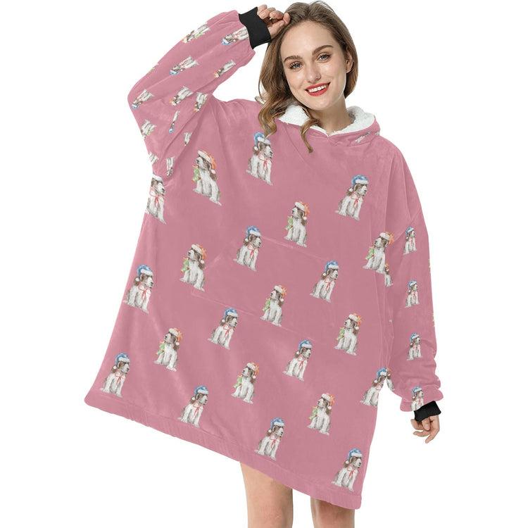 Watercolor Liver White Cocker Spaniels Christmas Blanket Hoodie-Blanket-Apparel, Blanket Hoodie, Blankets, Christmas, Cocker Spaniel, Dog Mom Gifts-Pink-ONE SIZE-5