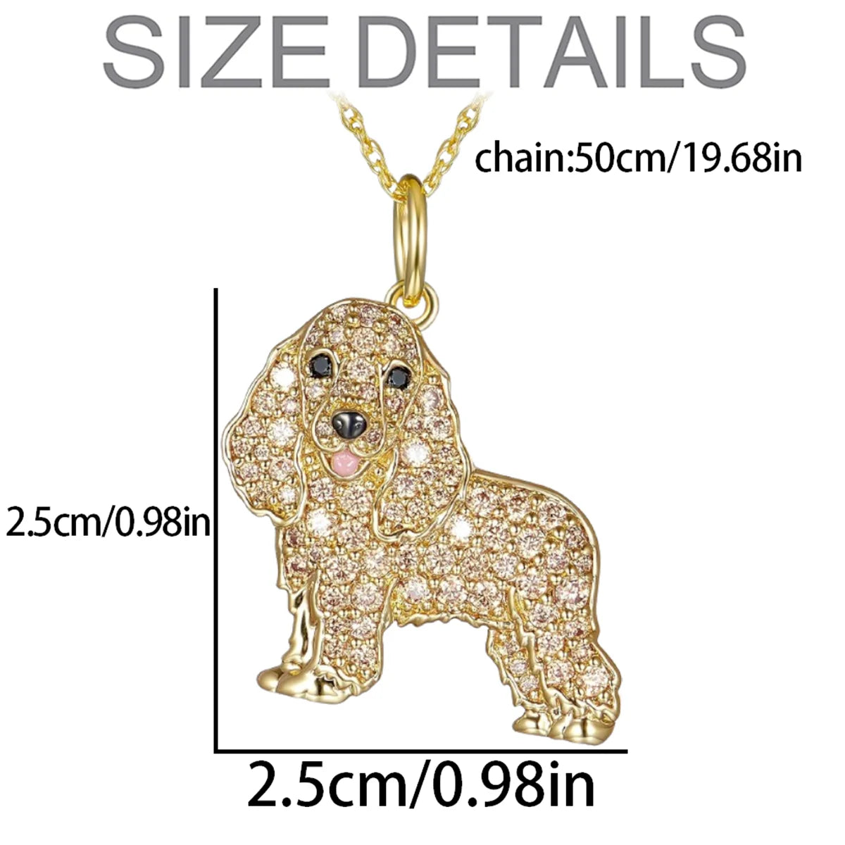 The graceful pendant captures the flowing ears, soulful eyes, and detailed coat of a Cocker Spaniel, exuding elegance and charm. Made from durable Zinc Alloy and adorned with sparkling Rhinestones, this necklace is a stunning accessory for any occasion.