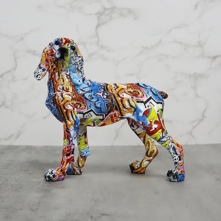 This stunning piece is crafted from high-quality resin and features a unique, colorful design created using the hydro dip technique. The bold, abstract patterns and bright colors make it a modern and edgy addition to any home decor. Perfect as a sentimental gift, this statue can be a beautiful reminder of a cherished pet or a striking piece of art for dog lovers.