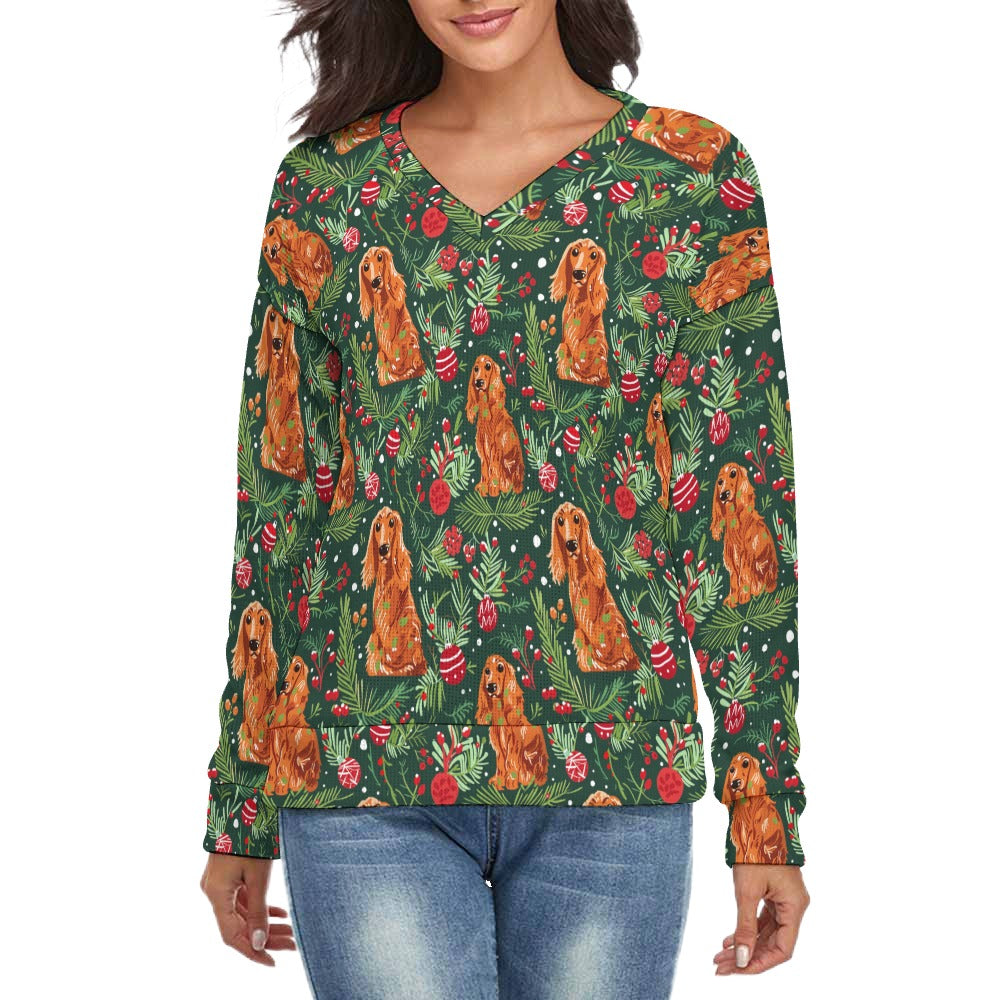 Mistletoe and Cocker Spaniels Ensemble Women's V-Neck Christmas Sweater