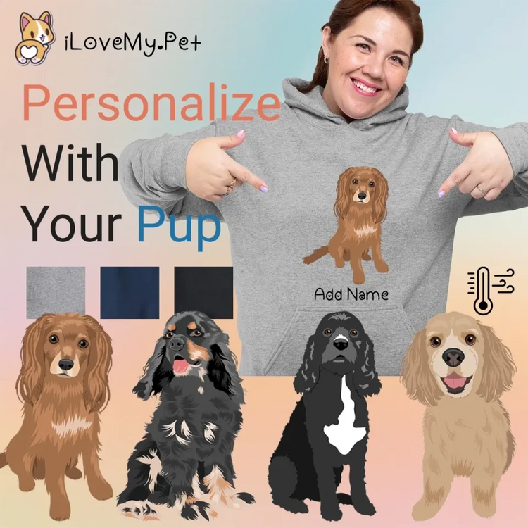 Unleash your furry love with our unique gifts for Cocker Spaniel lovers. This hoodie is more than just clothing; it's a heartfelt tribute to your beloved pet. Customize it with your pup's likeness and their name, making it a truly personal piece.