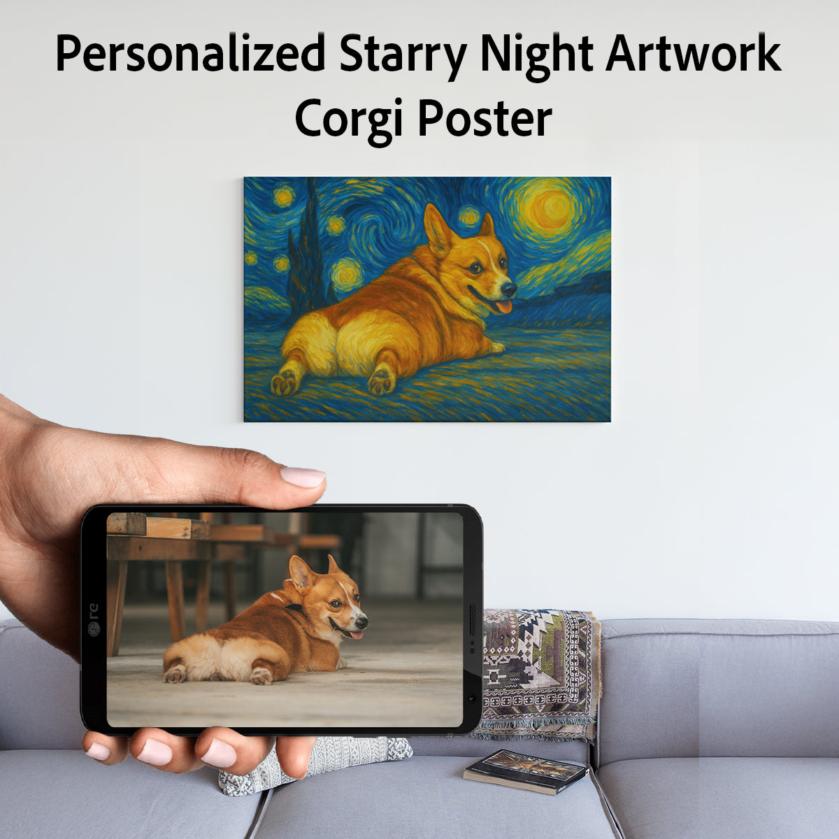 Transform your cherished memories into art with our Personalized Starry Night Artwork featuring your beloved Corgi!