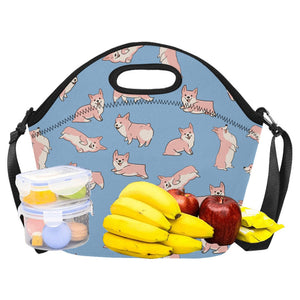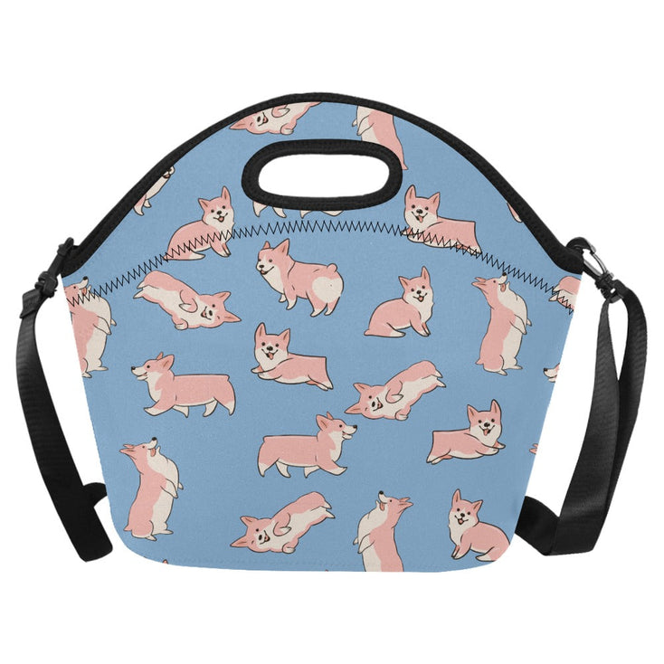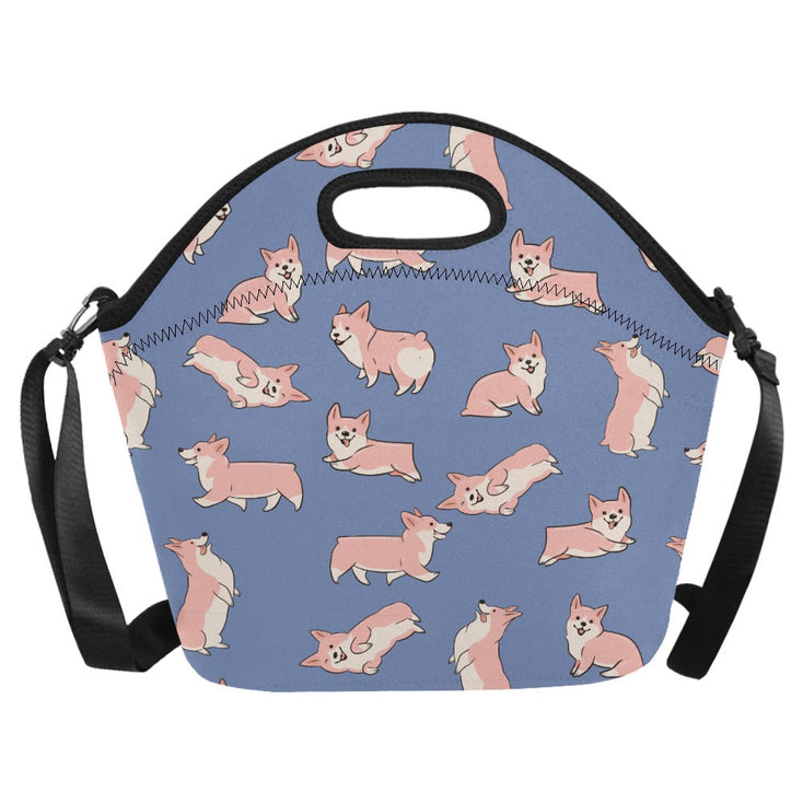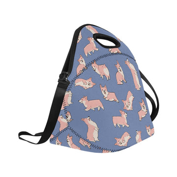 Playful Corgi Love Neoprene Lunch Bag-Slate Blue-ONESIZE-2