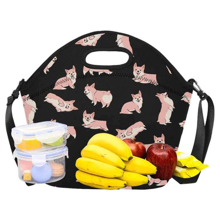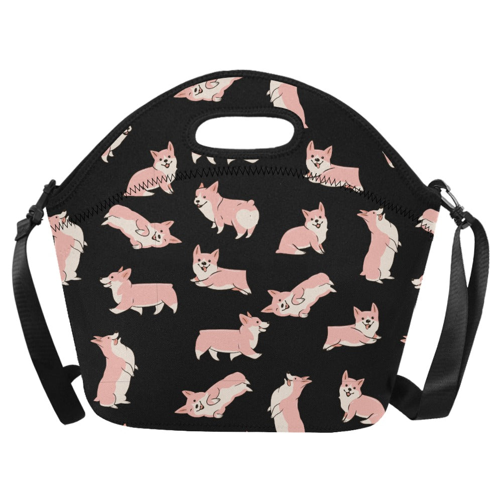 Playful Corgi Love Neoprene Lunch Bag-Midnight Black-ONESIZE-10