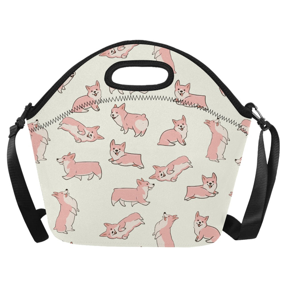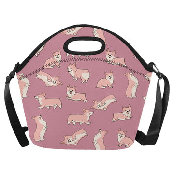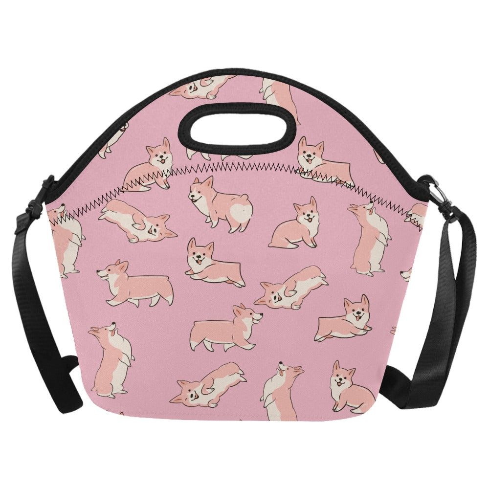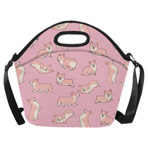 Playful Corgi Love Neoprene Lunch Bag-Light Pink-ONESIZE-5