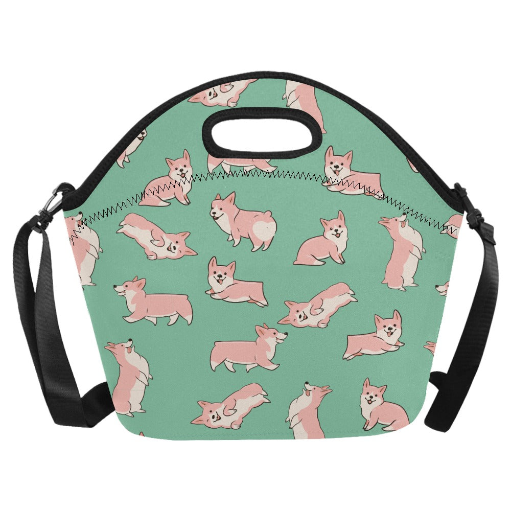 Playful Corgi Love Neoprene Lunch Bag-Mint Green-ONESIZE-7