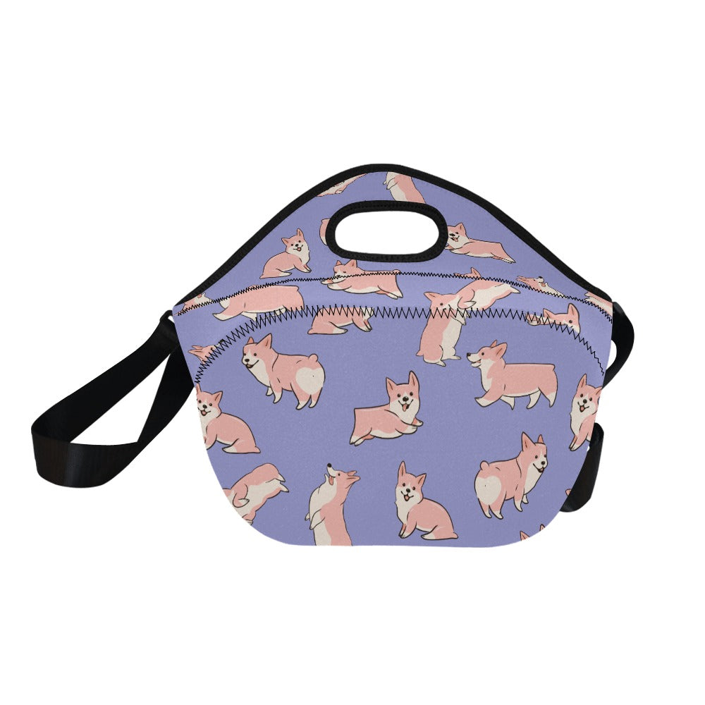 Playful Corgi Love Neoprene Lunch Bag-Lavender Purple-ONESIZE-8