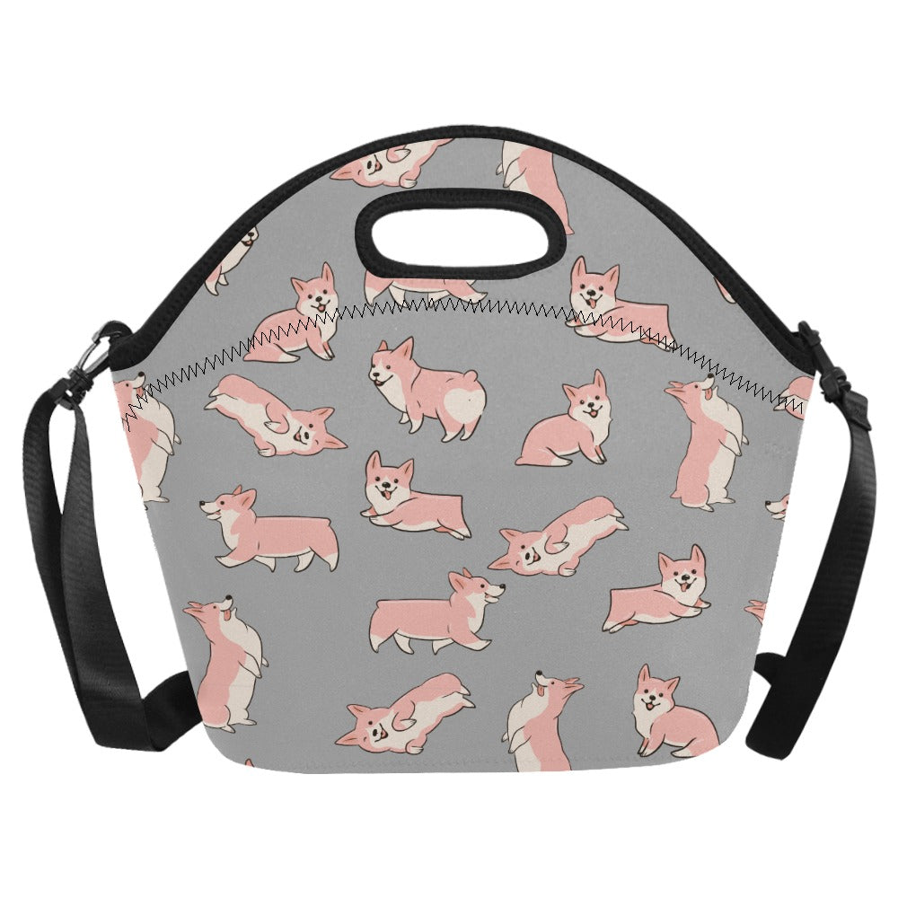 Playful Corgi Love Neoprene Lunch Bag-Parisian Gray-ONESIZE-9