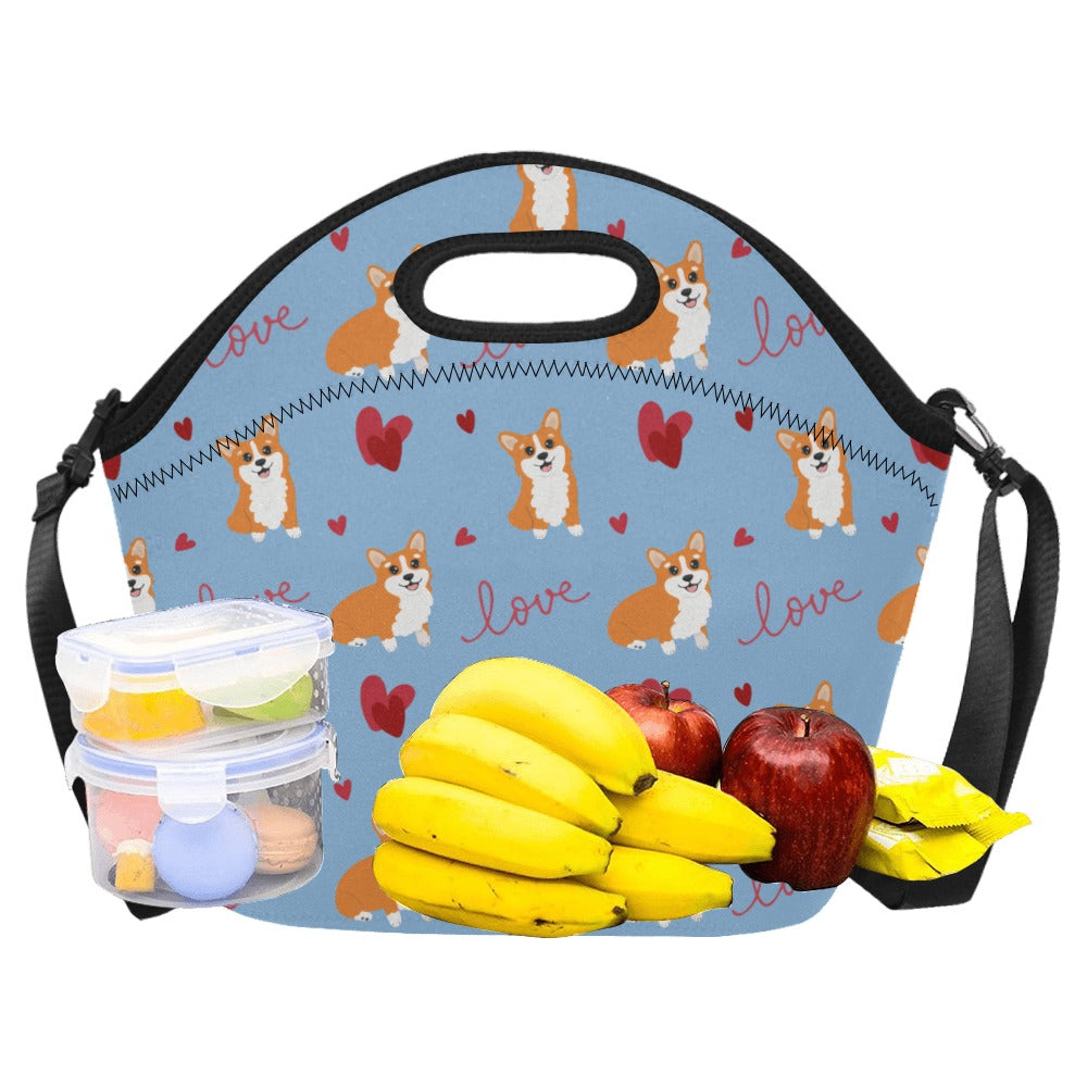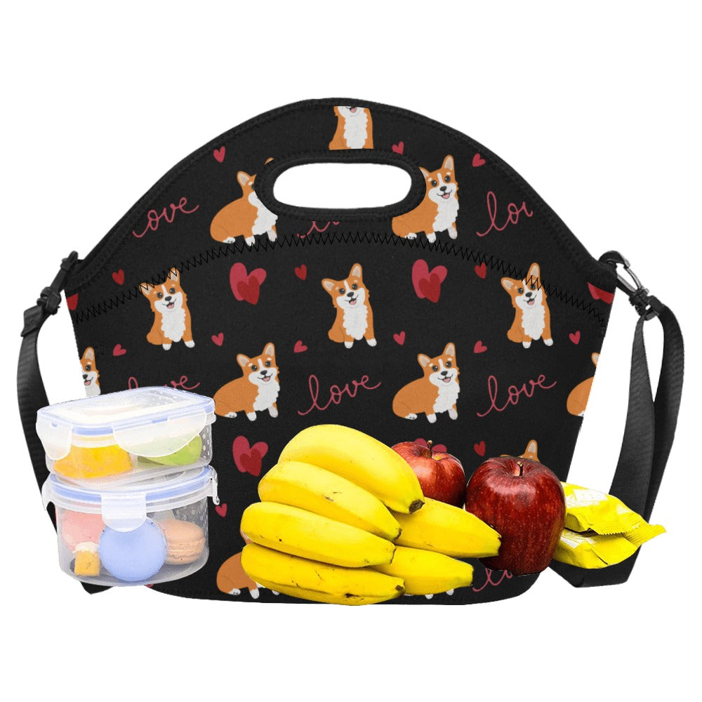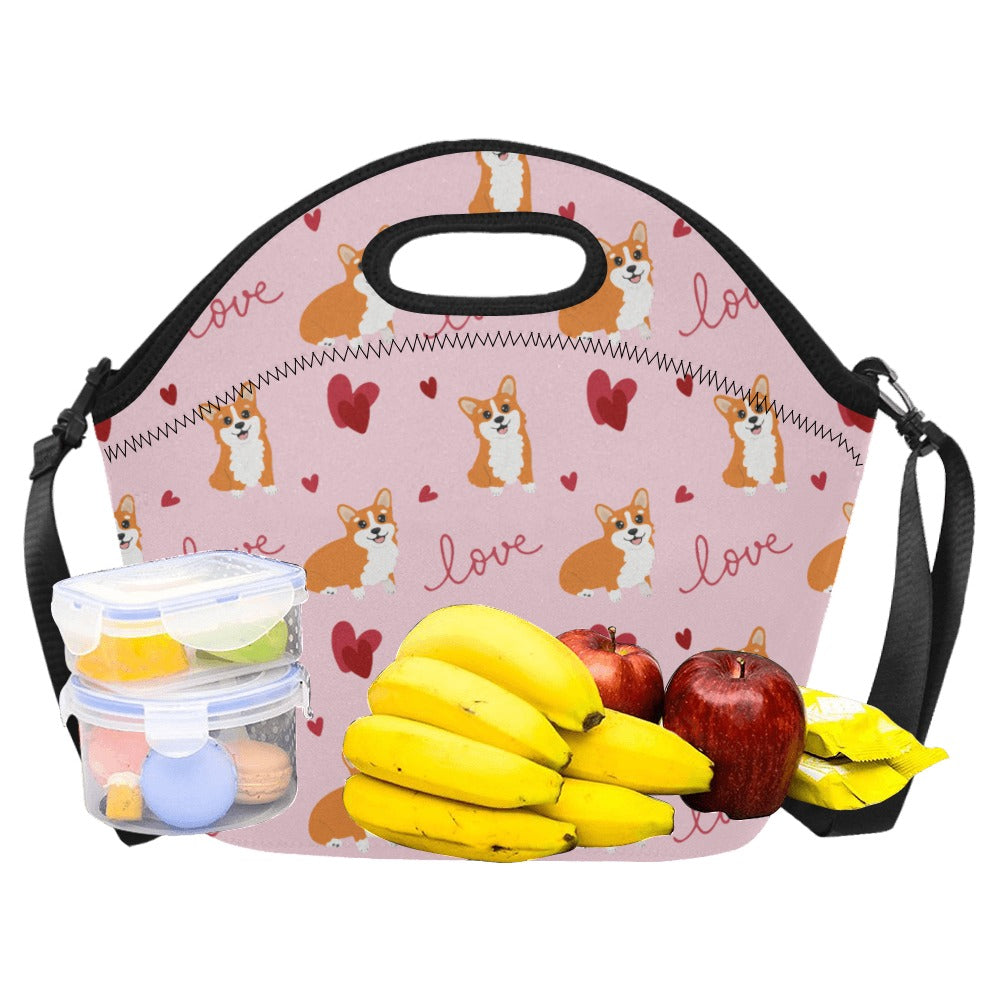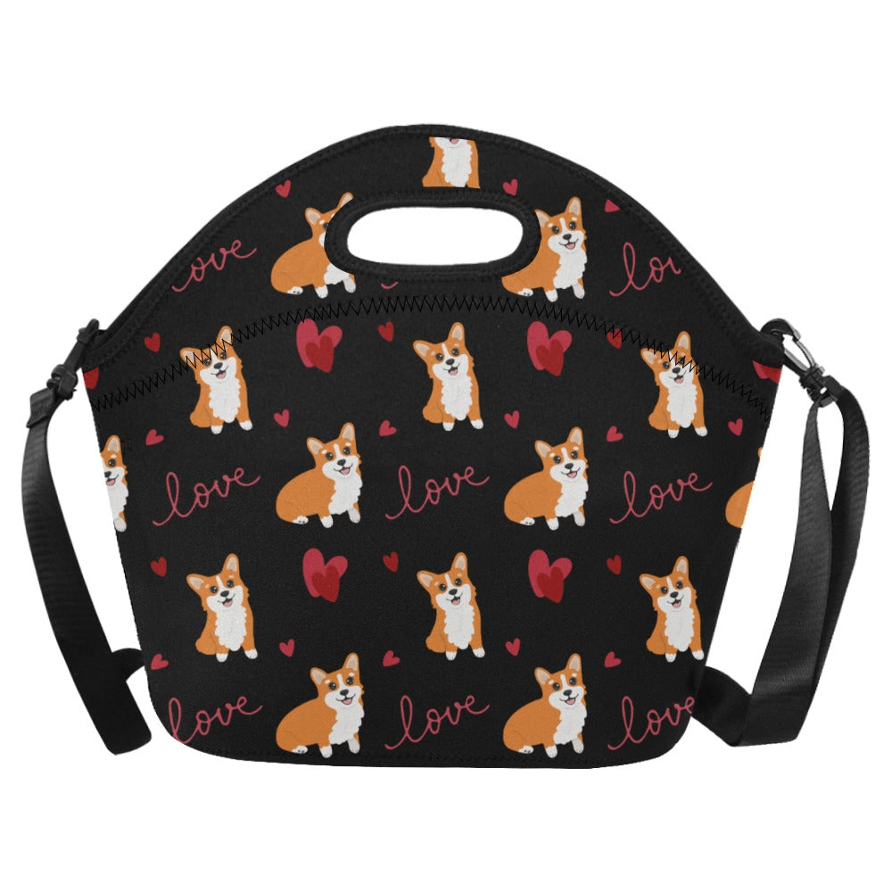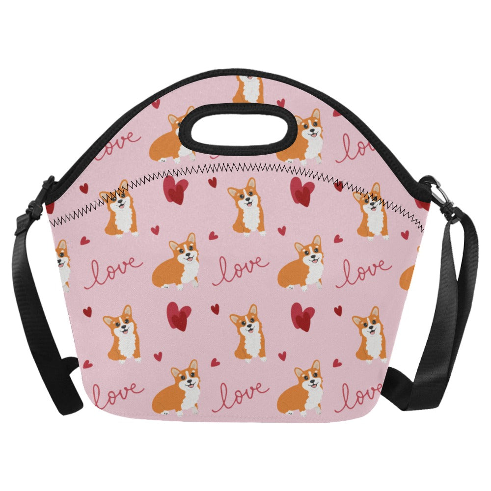 Celebrate your love for Corgis with our charming Neoprene Lunch Bag, designed to keep your meals as delightful as your furry friend! Adorned with the cutest Corgis surrounded by red hearts, this bag is a beautiful expression of your affection for these lovable companions.