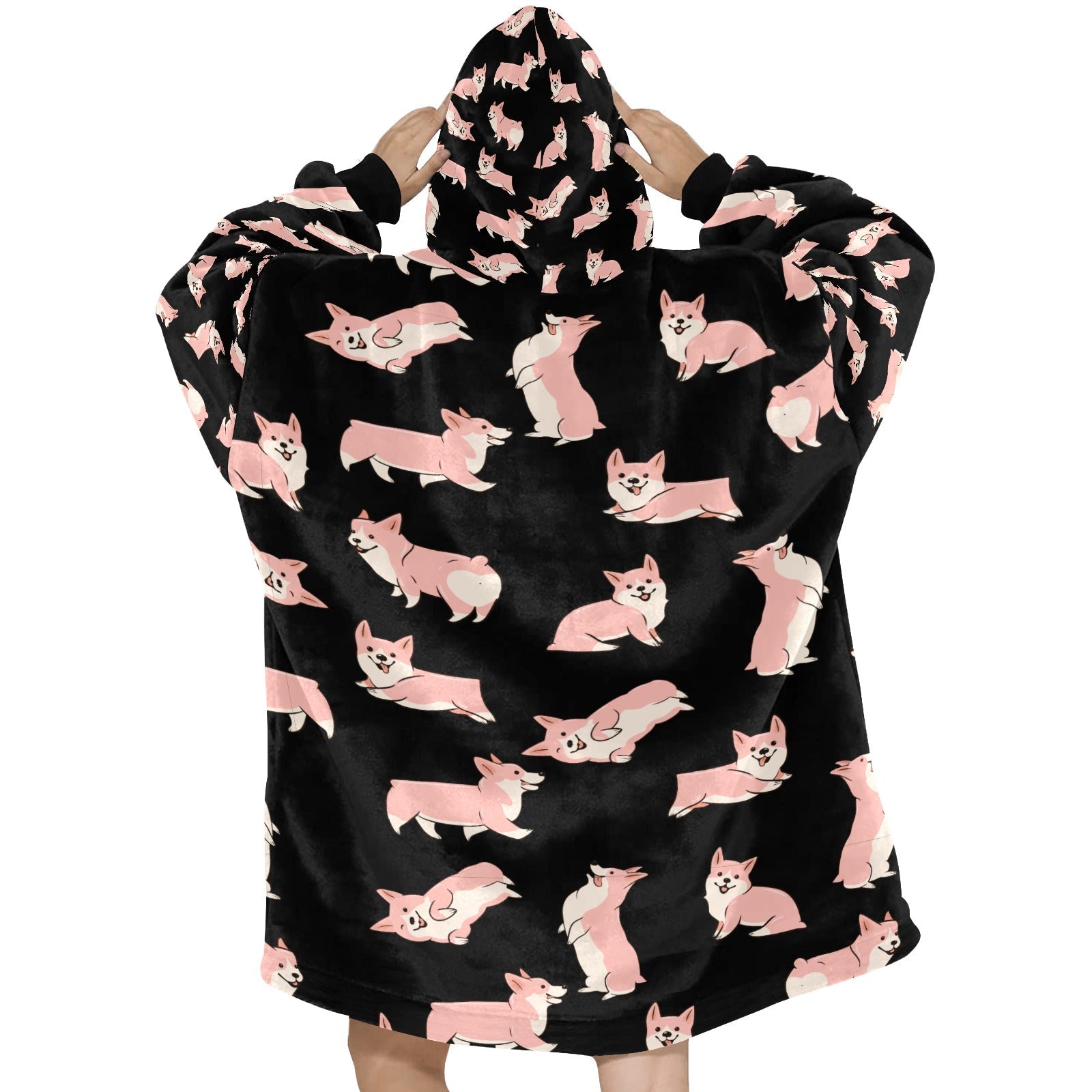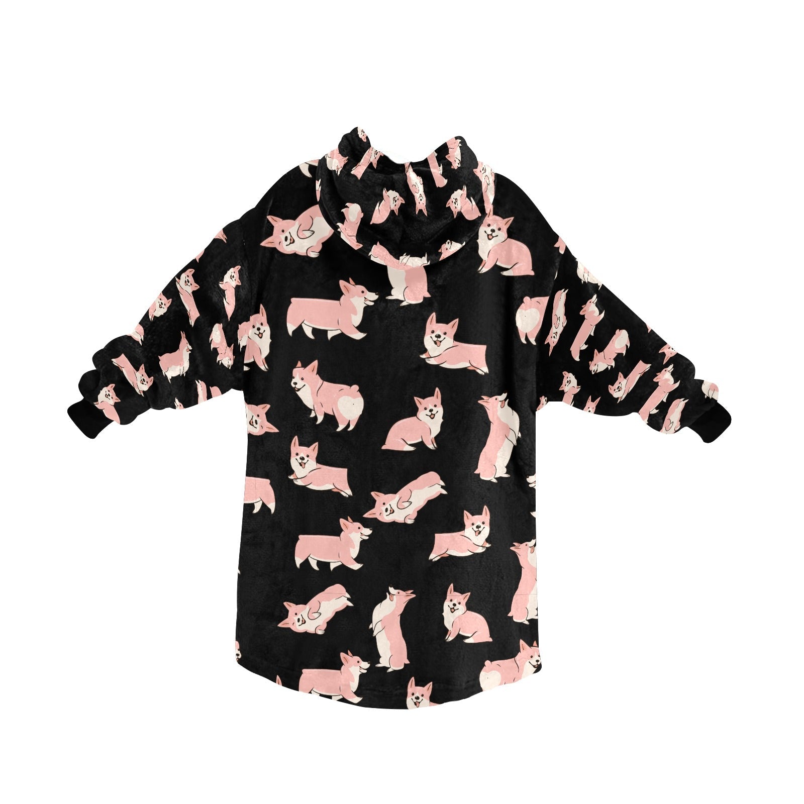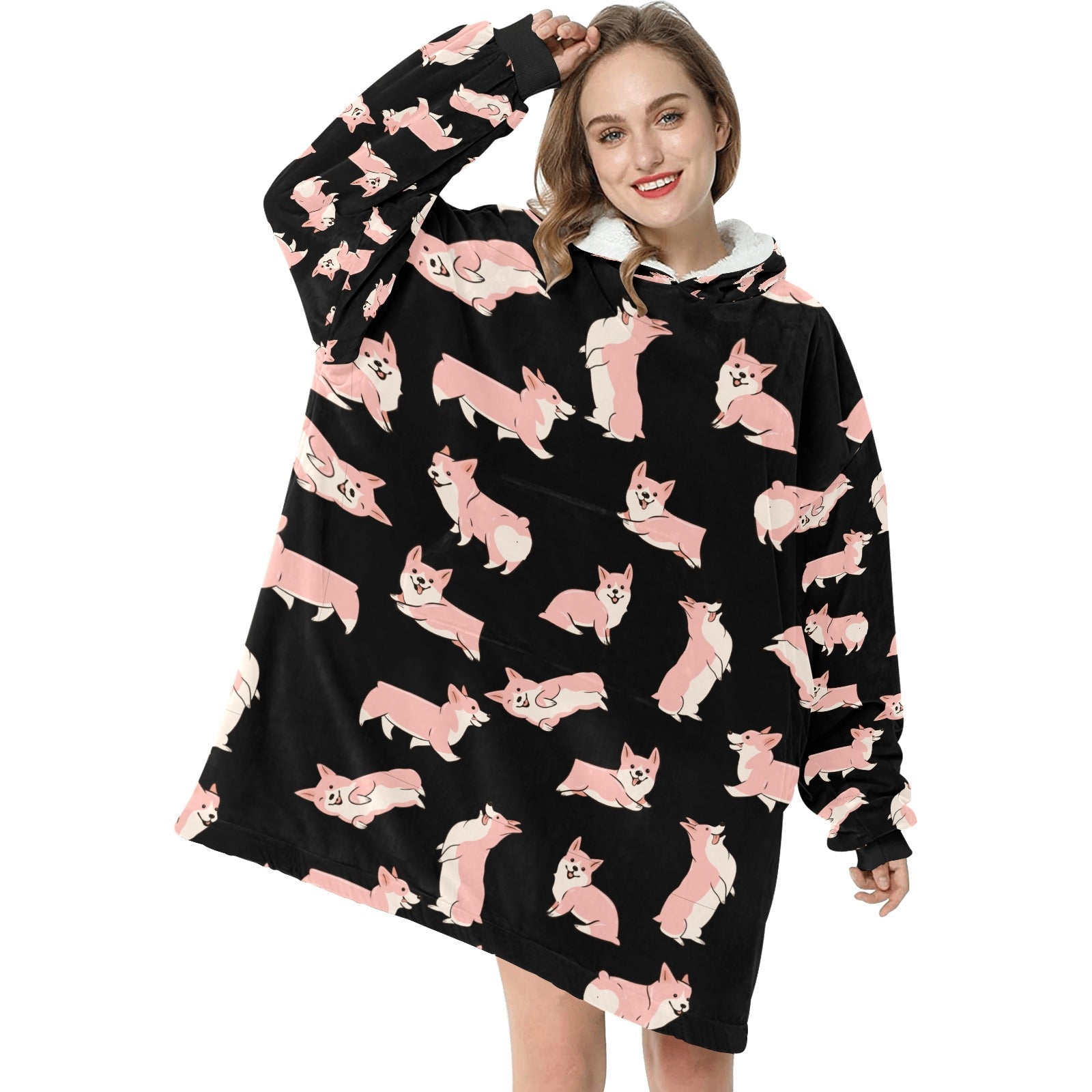 Playful Corgi Love Blanket Hoodie-Blanket-Apparel, Blanket Hoodie, Blankets, Corgi, Dog Mom Gifts-Midnight Black-ONE SIZE-10
