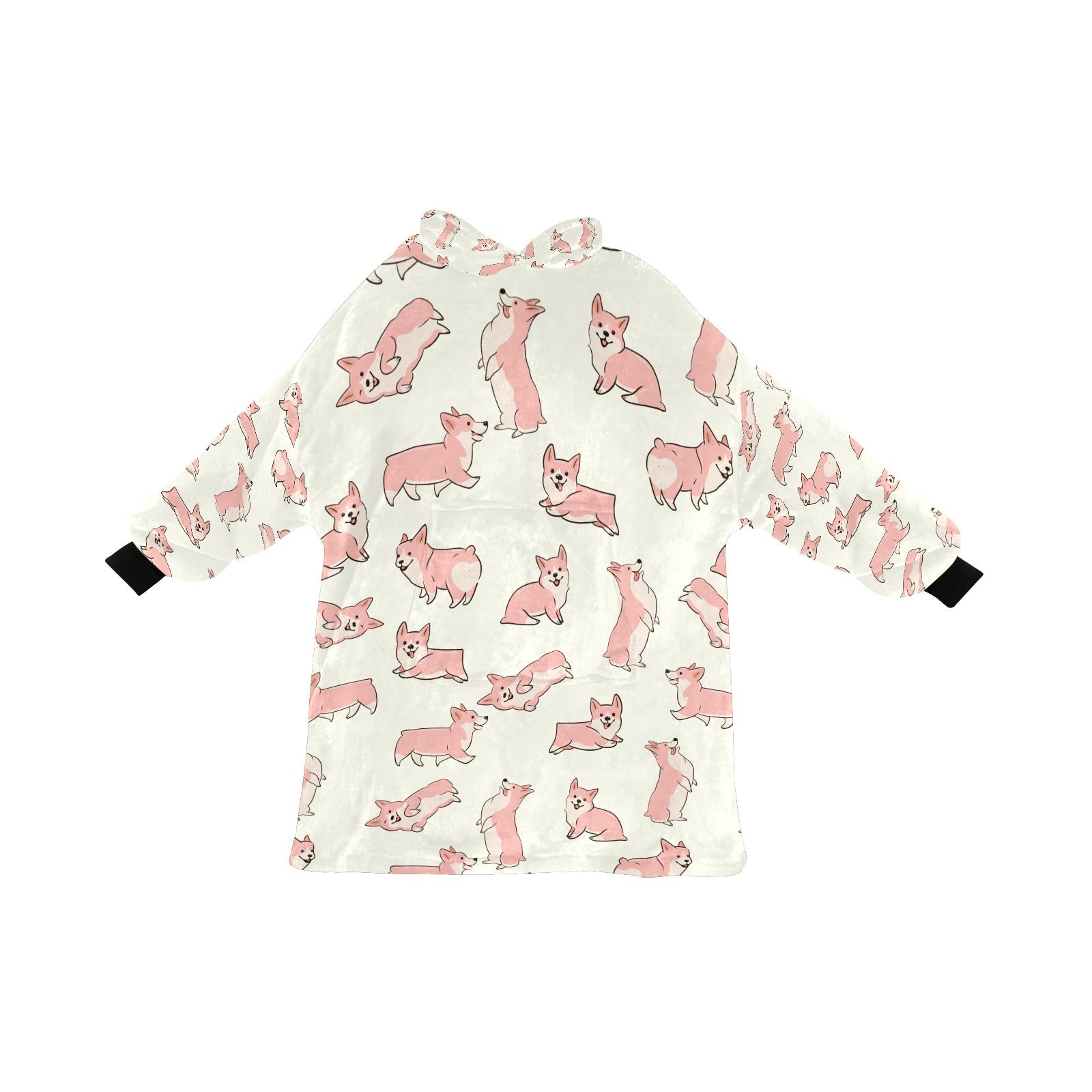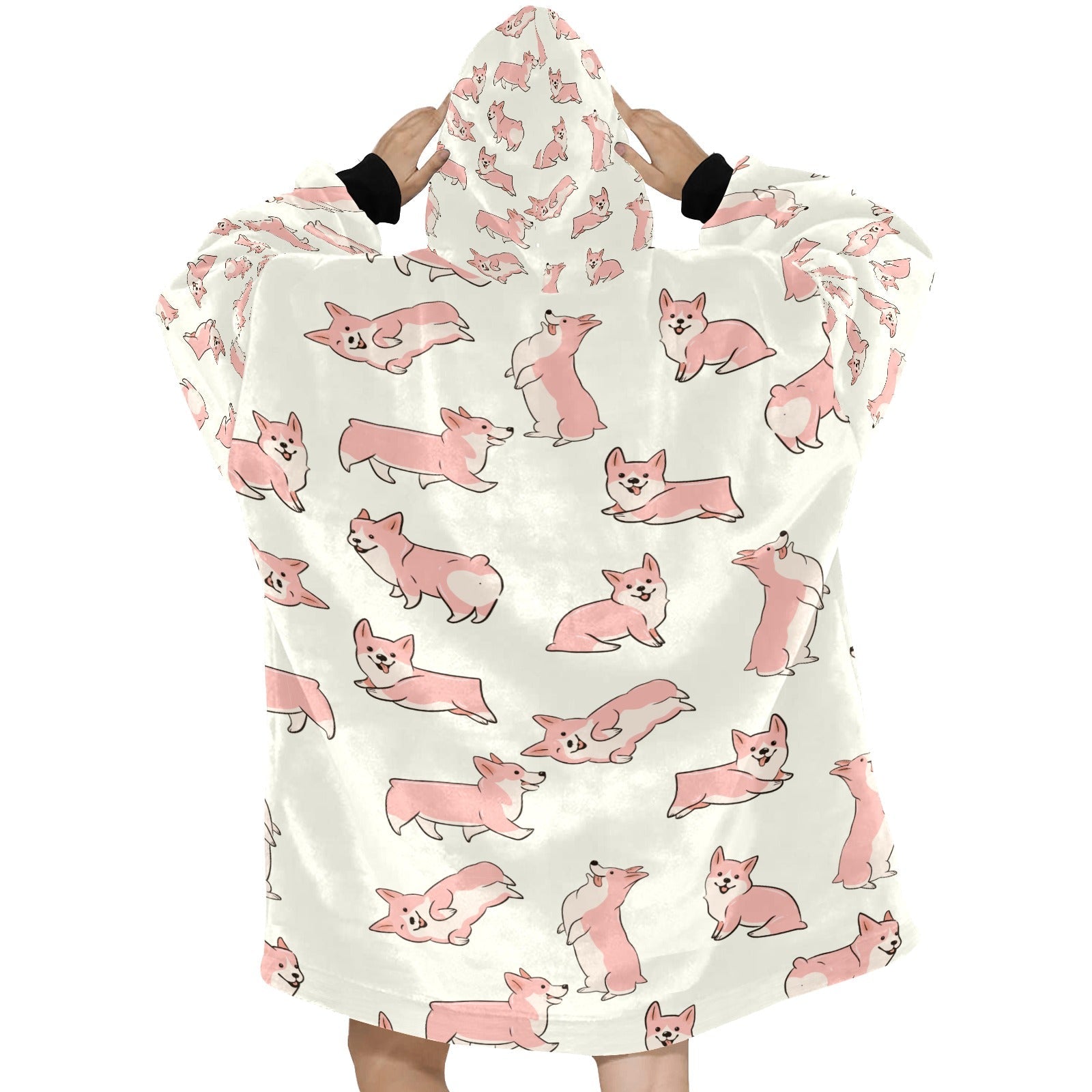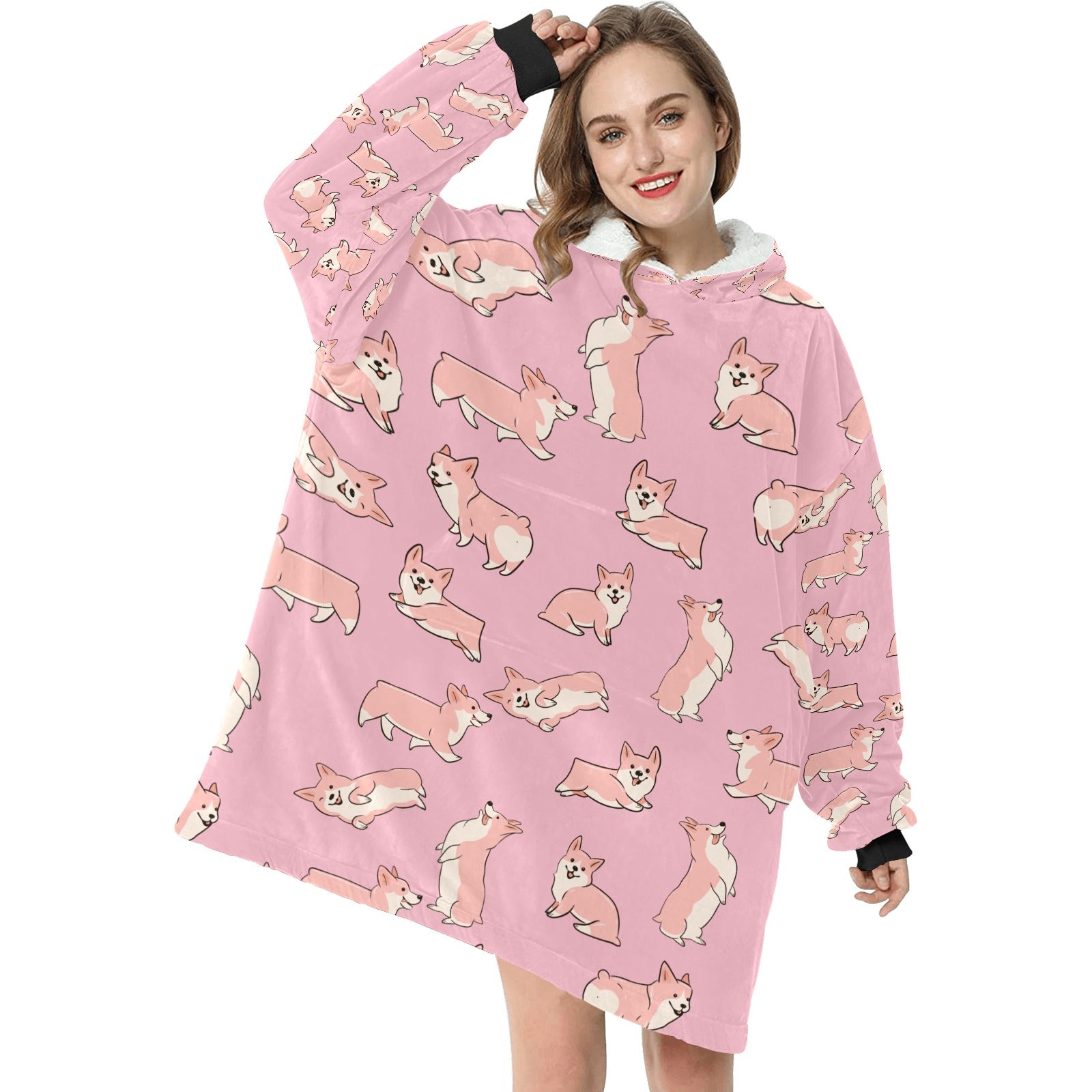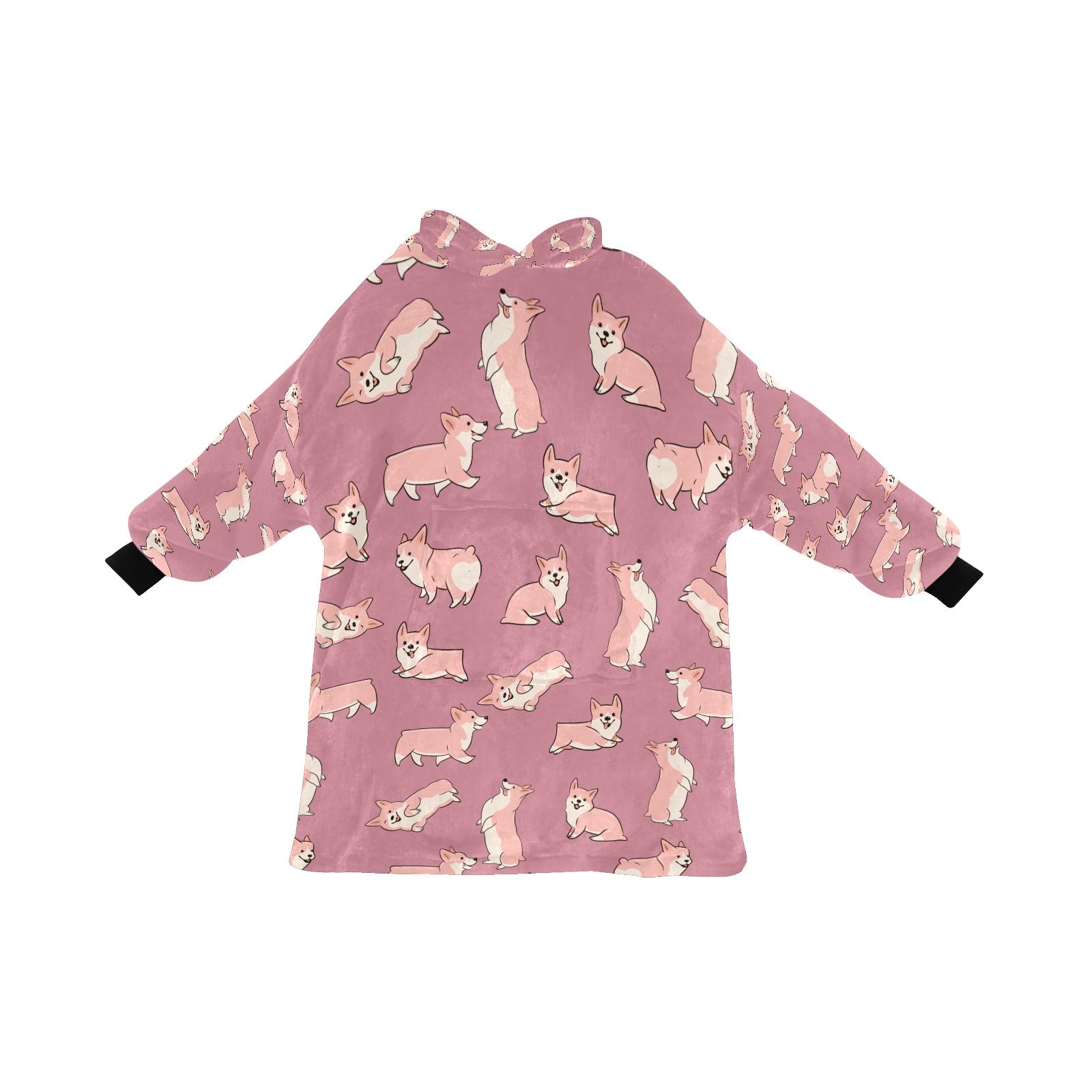 Playful Corgi Love Blanket Hoodie-Blanket-Apparel, Blanket Hoodie, Blankets, Corgi, Dog Mom Gifts-Light Pink-ONE SIZE-16