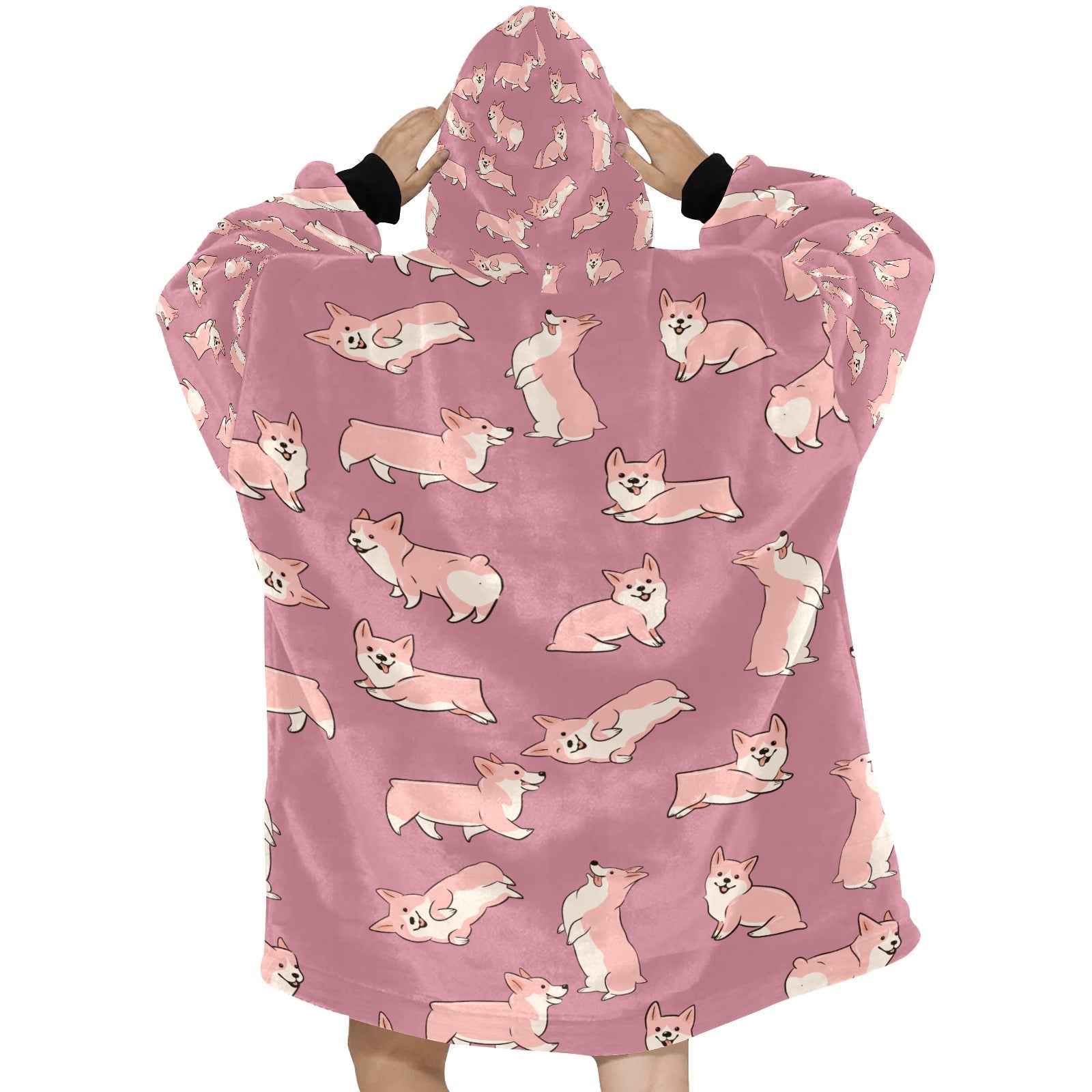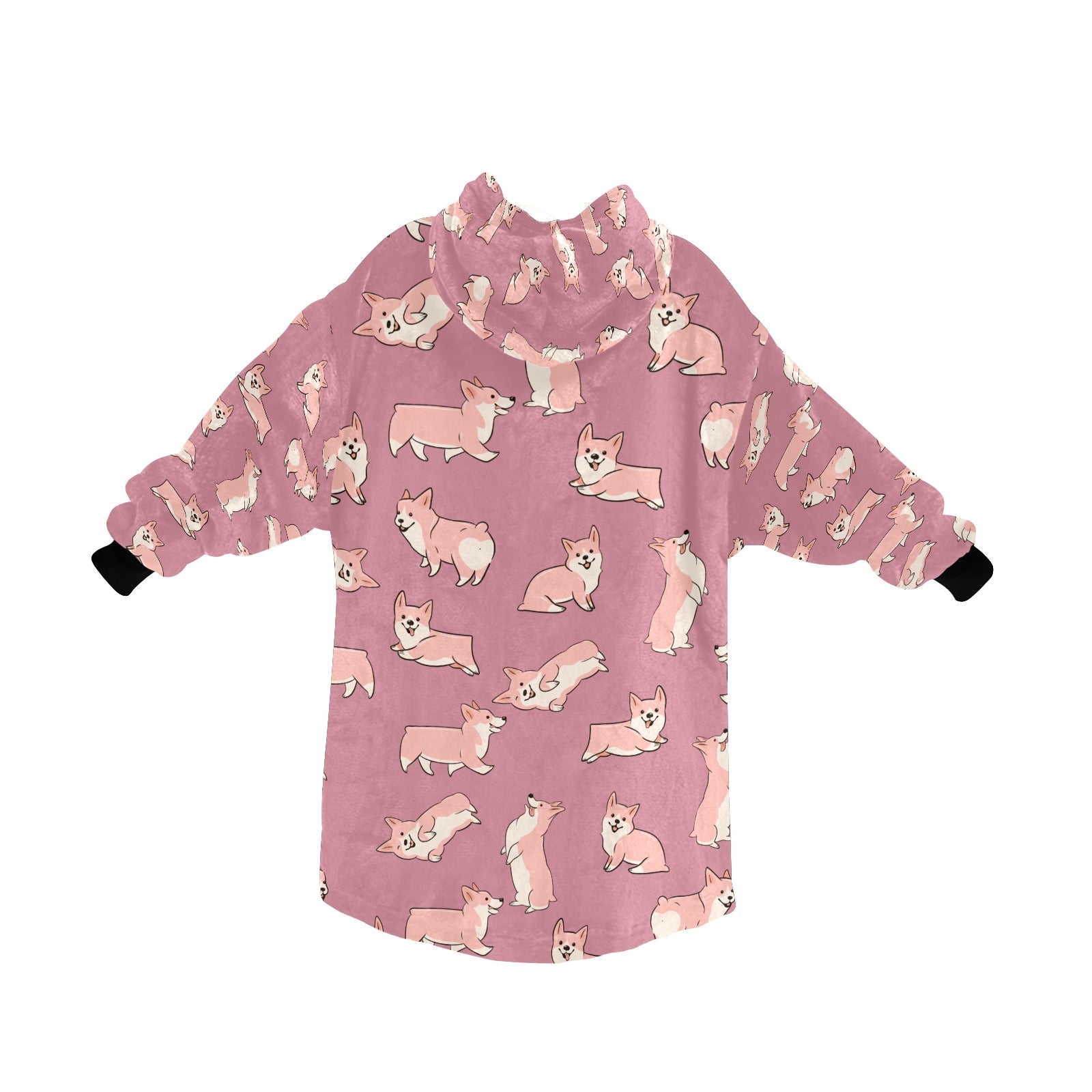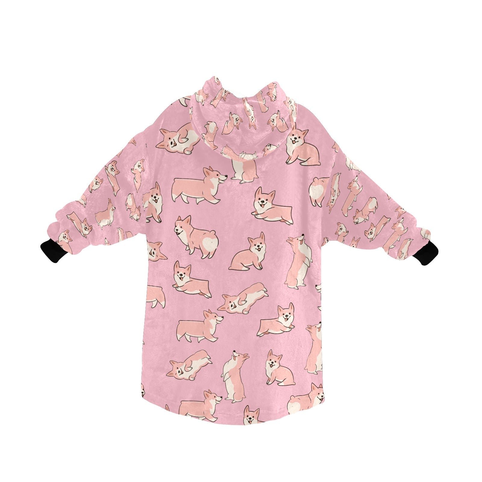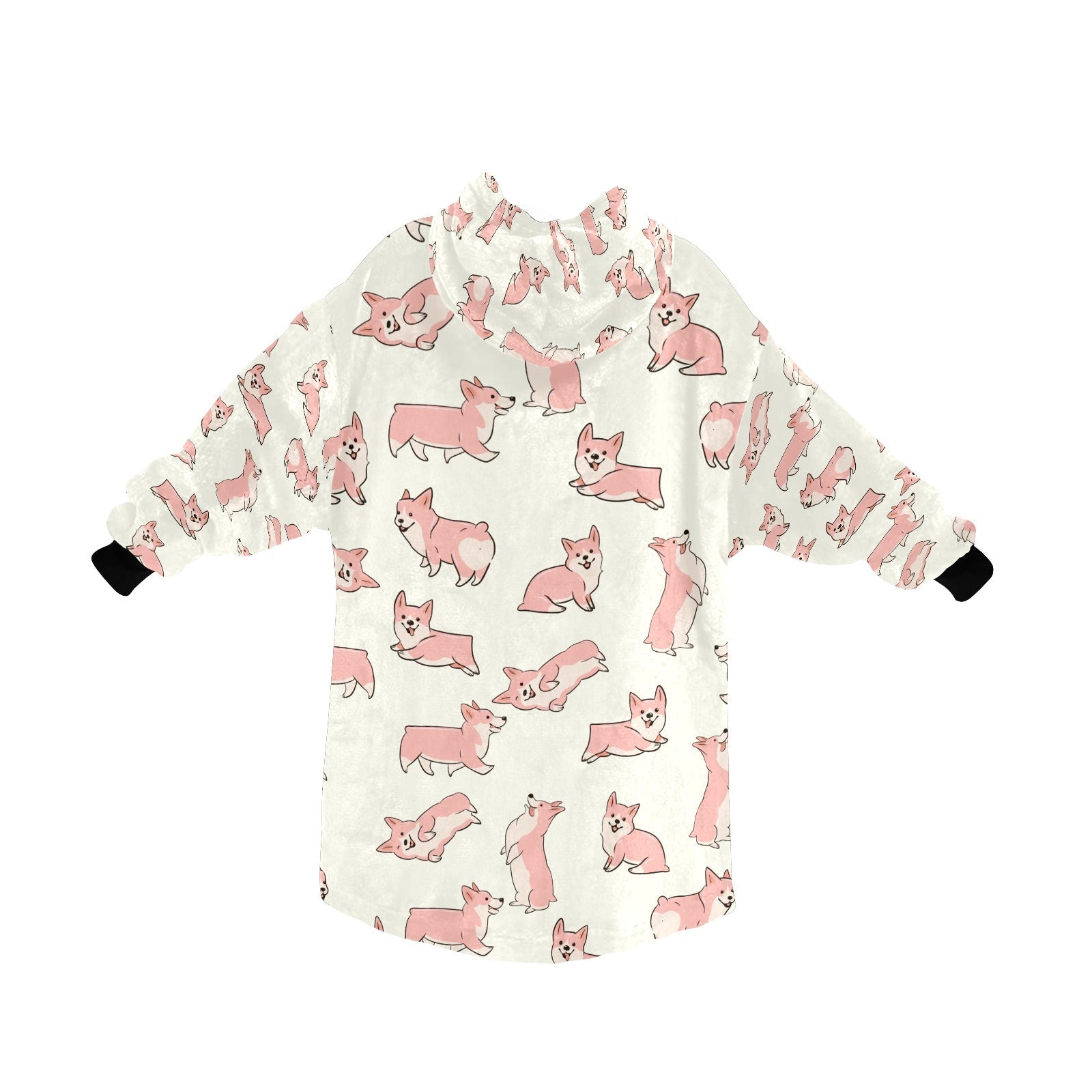 Playful Corgi Love Blanket Hoodie-Blanket-Apparel, Blanket Hoodie, Blankets, Corgi, Dog Mom Gifts-Light Pink-ONE SIZE-16