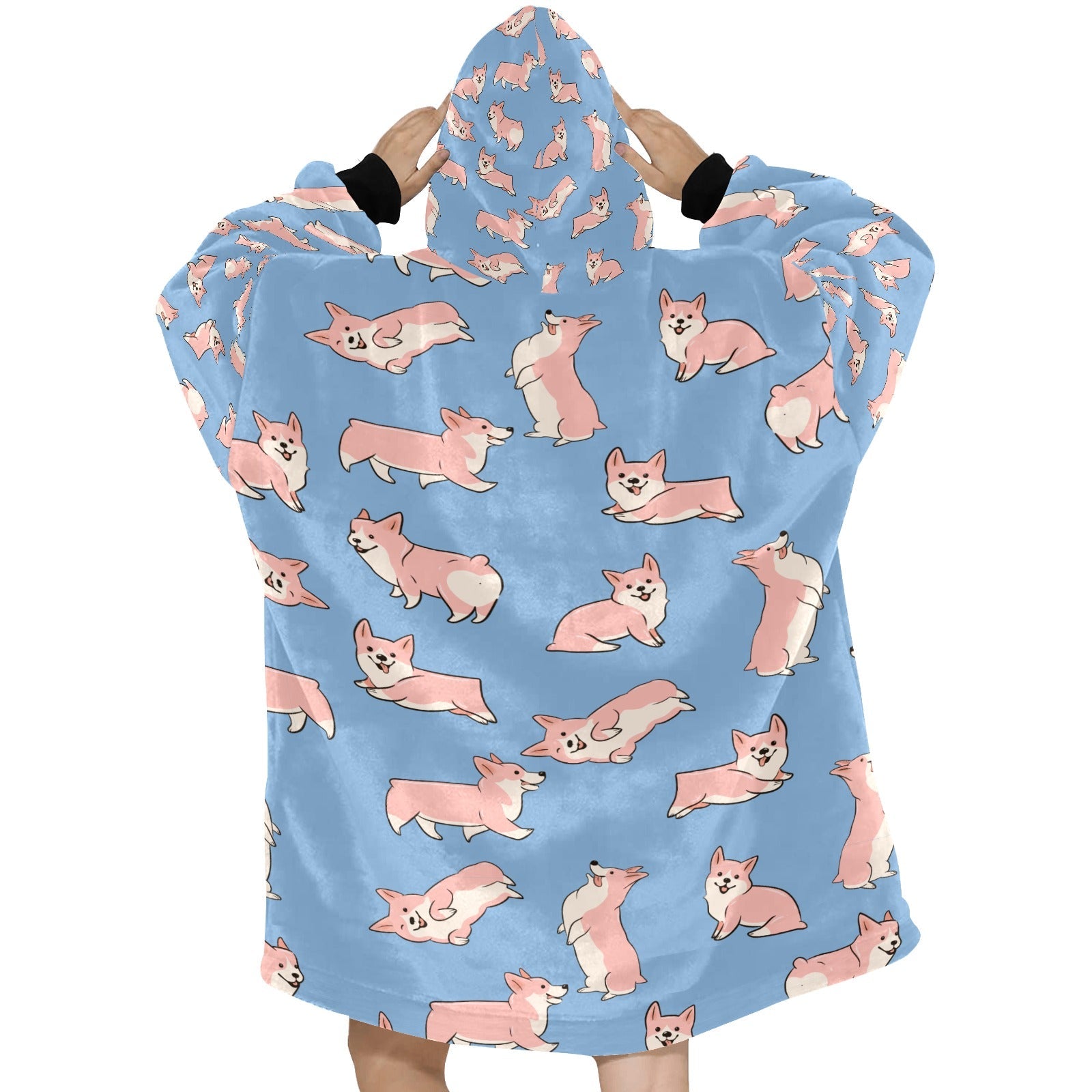 Playful Corgi Love Blanket Hoodie-Blanket-Apparel, Blanket Hoodie, Blankets, Corgi, Dog Mom Gifts-Sky Blue-ONE SIZE-22