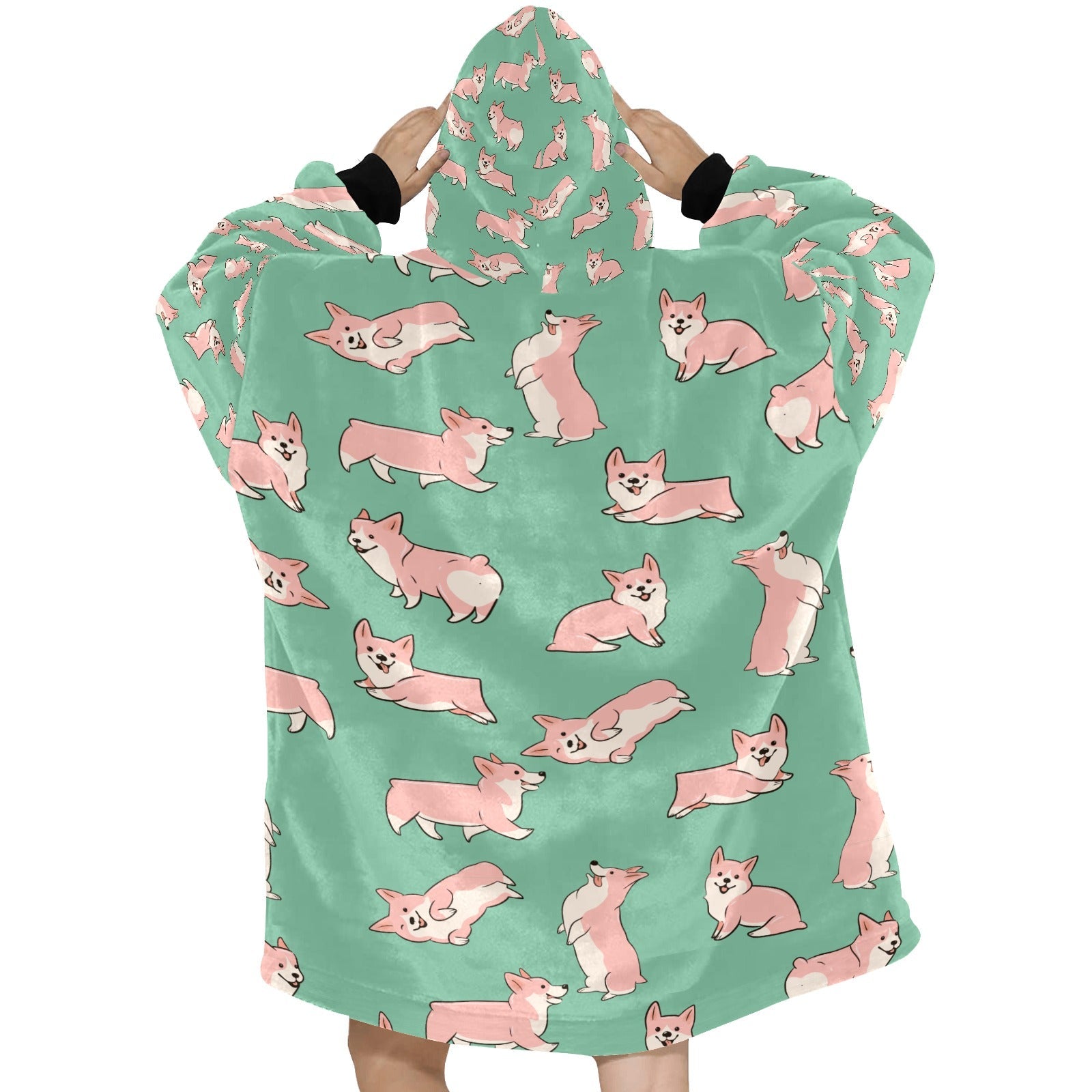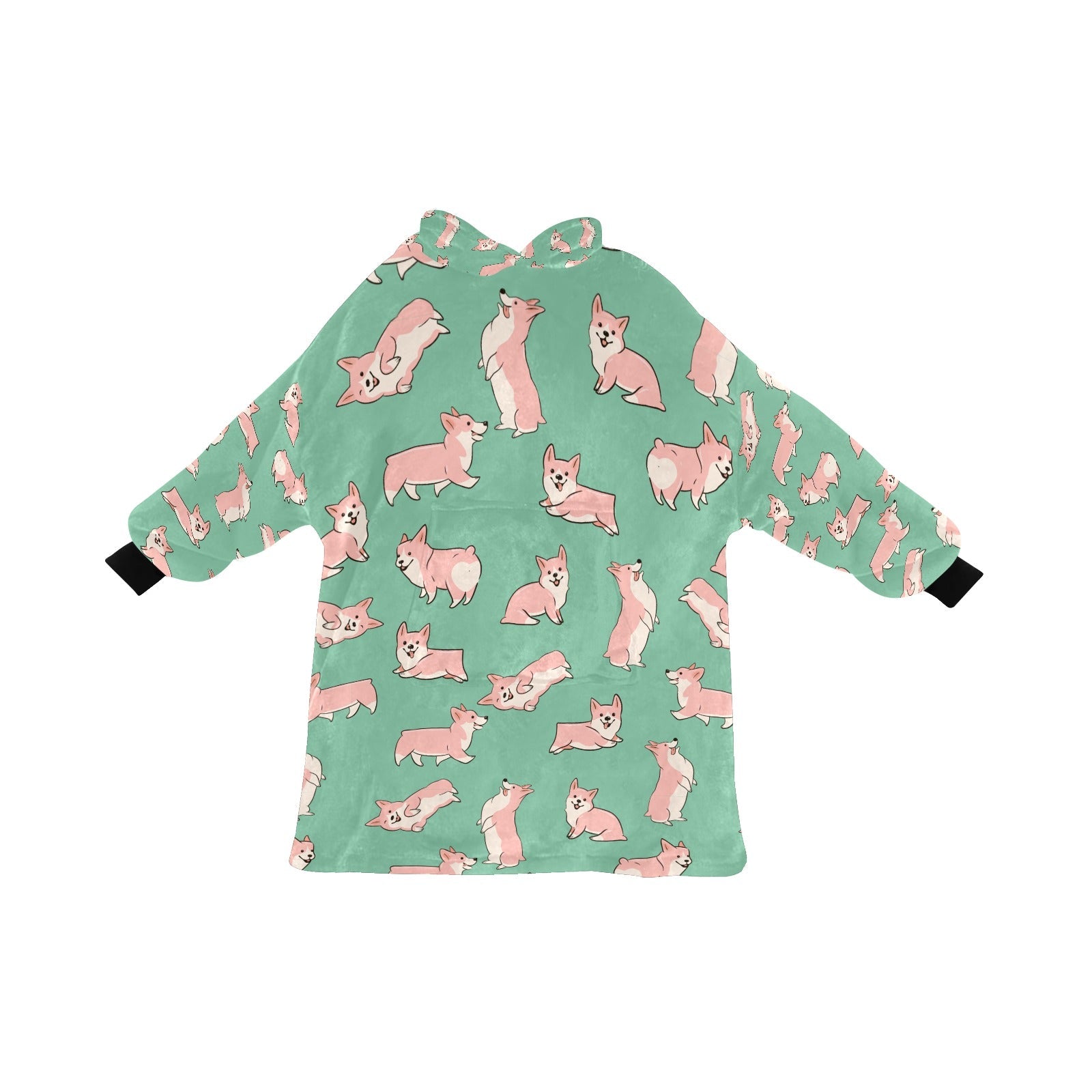 Playful Corgi Love Blanket Hoodie-Blanket-Apparel, Blanket Hoodie, Blankets, Corgi, Dog Mom Gifts-Mint Green-ONE SIZE-28