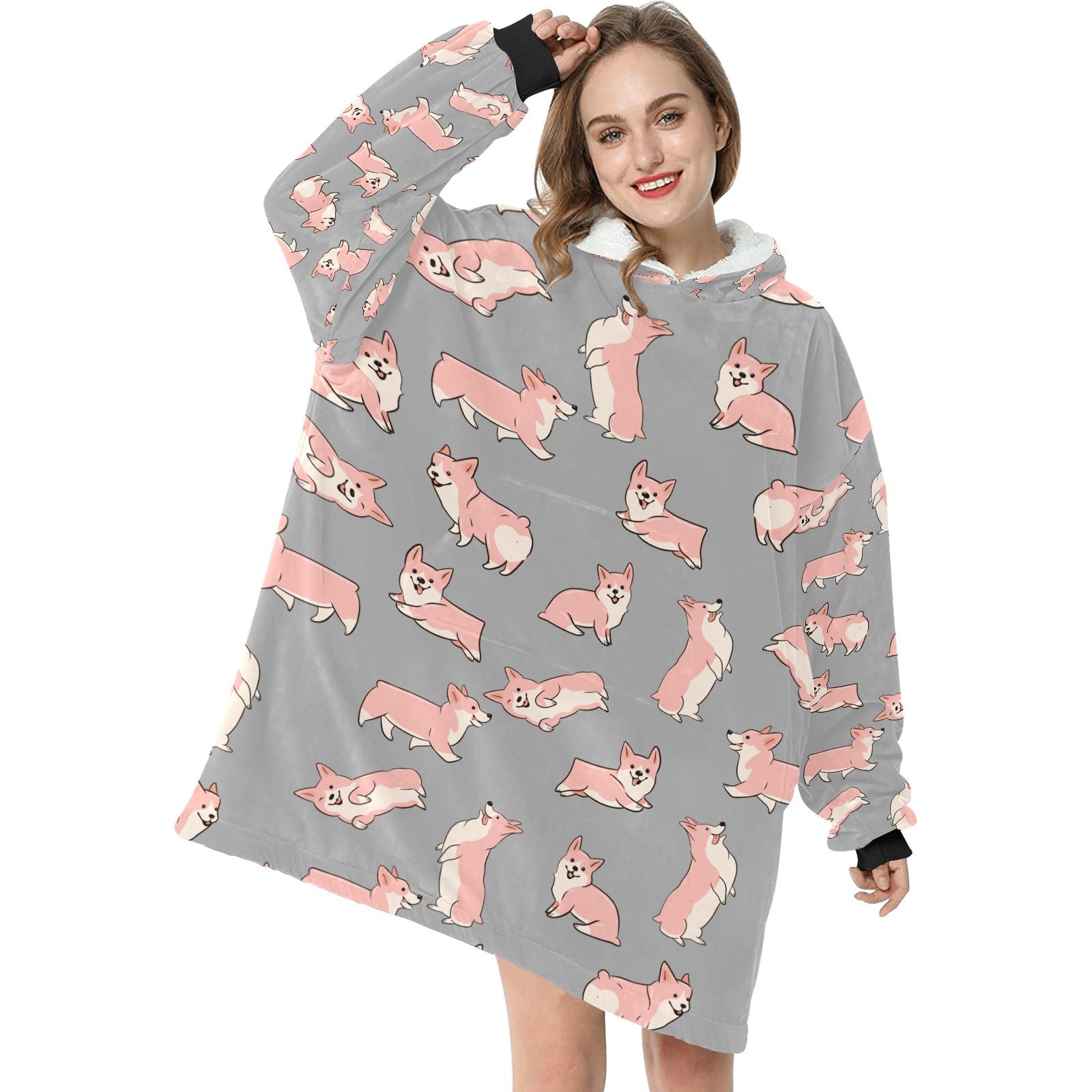 Playful Corgi Love Blanket Hoodie-Blanket-Apparel, Blanket Hoodie, Blankets, Corgi, Dog Mom Gifts-Parisian Gray-ONE SIZE-34