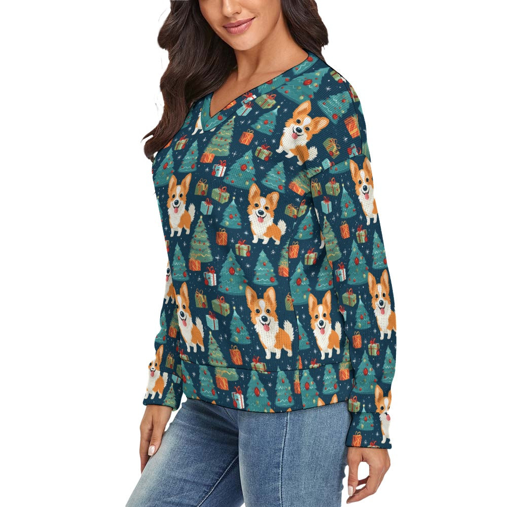 Corgi Celebration Women's V-Neck Christmas Sweater